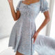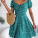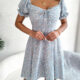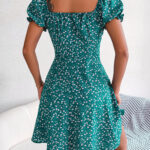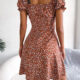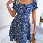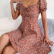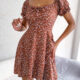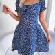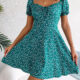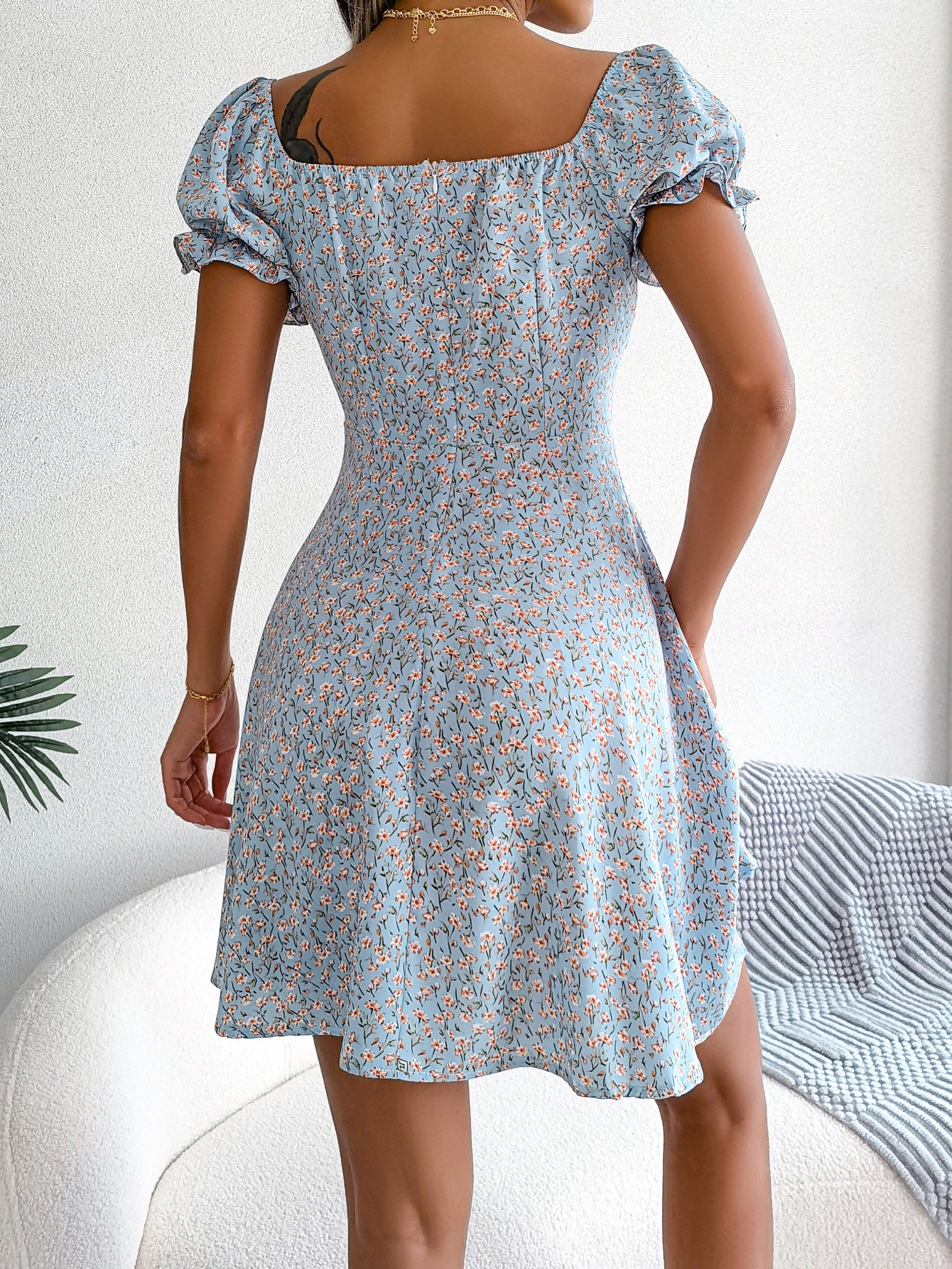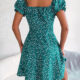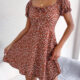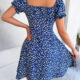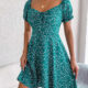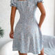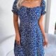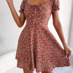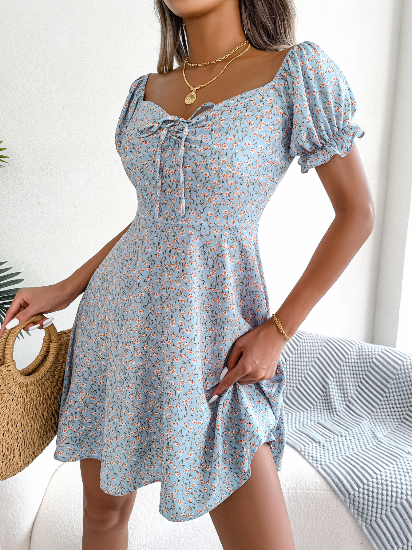 Women Casual Bell Sleeve Drawstring Tie Flowy Floral Print Dress