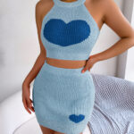 Be the first to review “Women Casual Color Block Heart Cropped Top & Bodycon Skirt Knit Set”