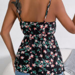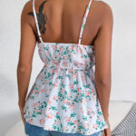 Women Casual Floral Print Tie Waist Camisole Chiffon Top