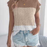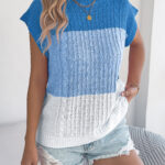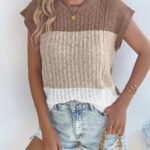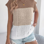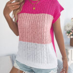 Women Color Block Cable Knit Casual Batwing Sleeve Loose Vacation Top