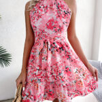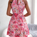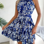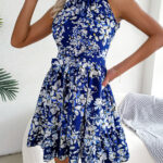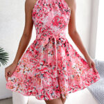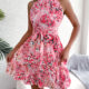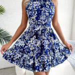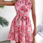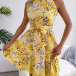 Women Elegant Tie Waist Ruffle Hem Flowy Floral Print Dress