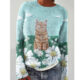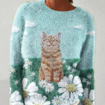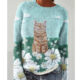 Womens 3D Digital-Print Crew-Neck Long-Sleeve Sweatshirt Top