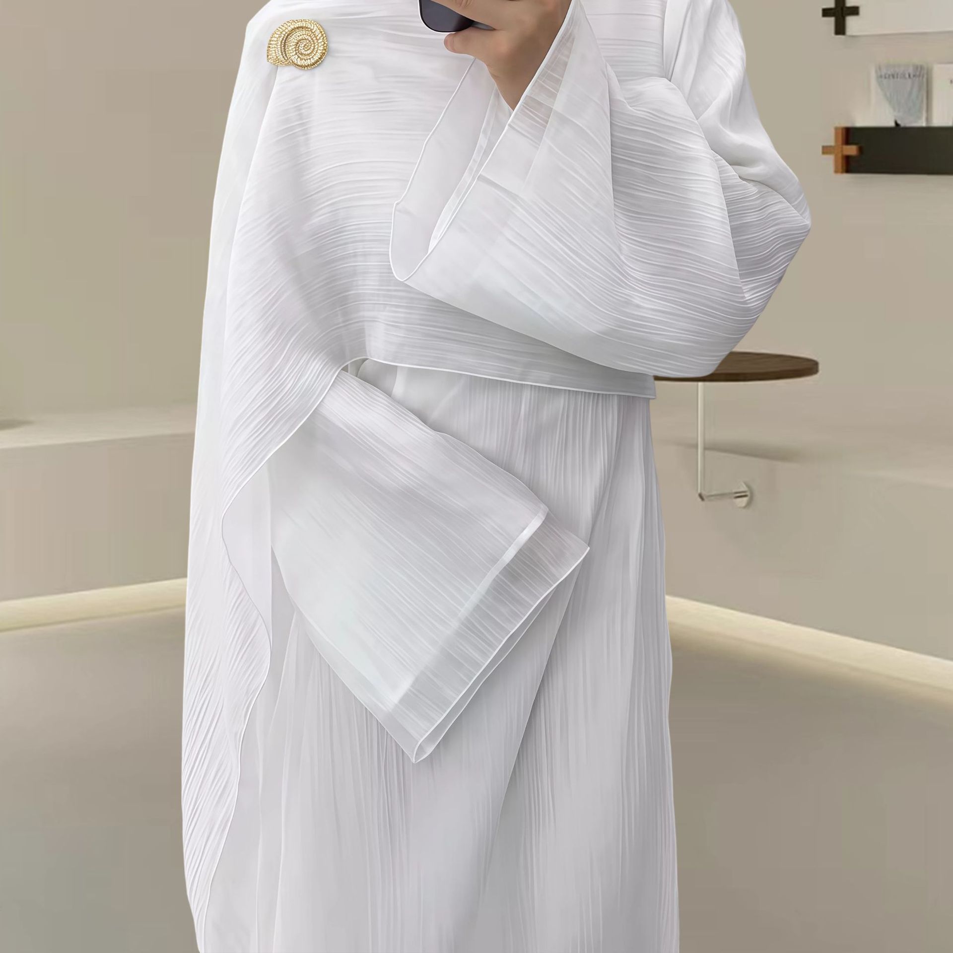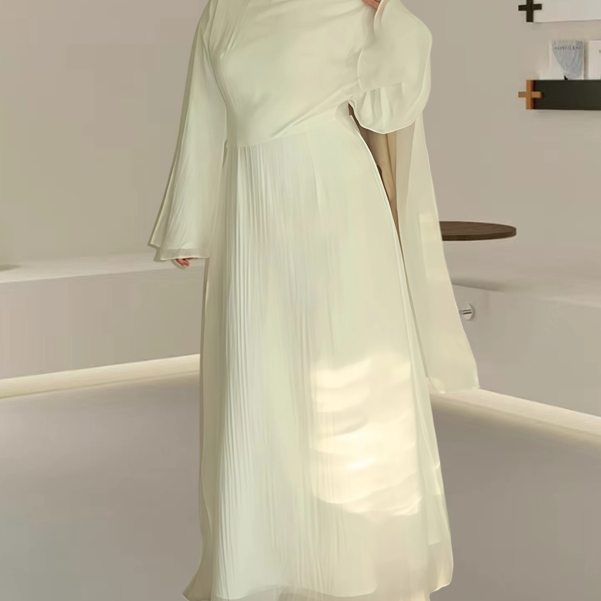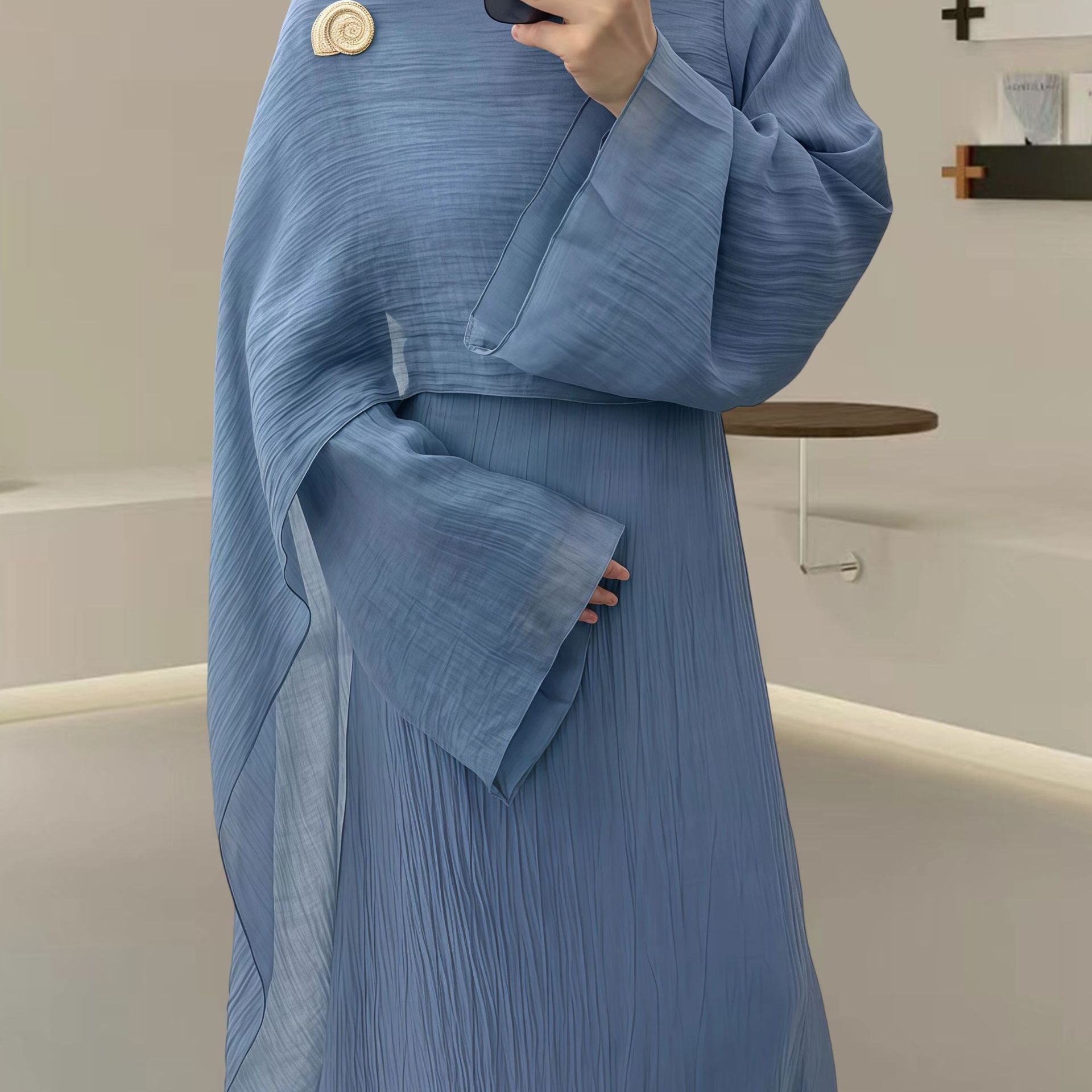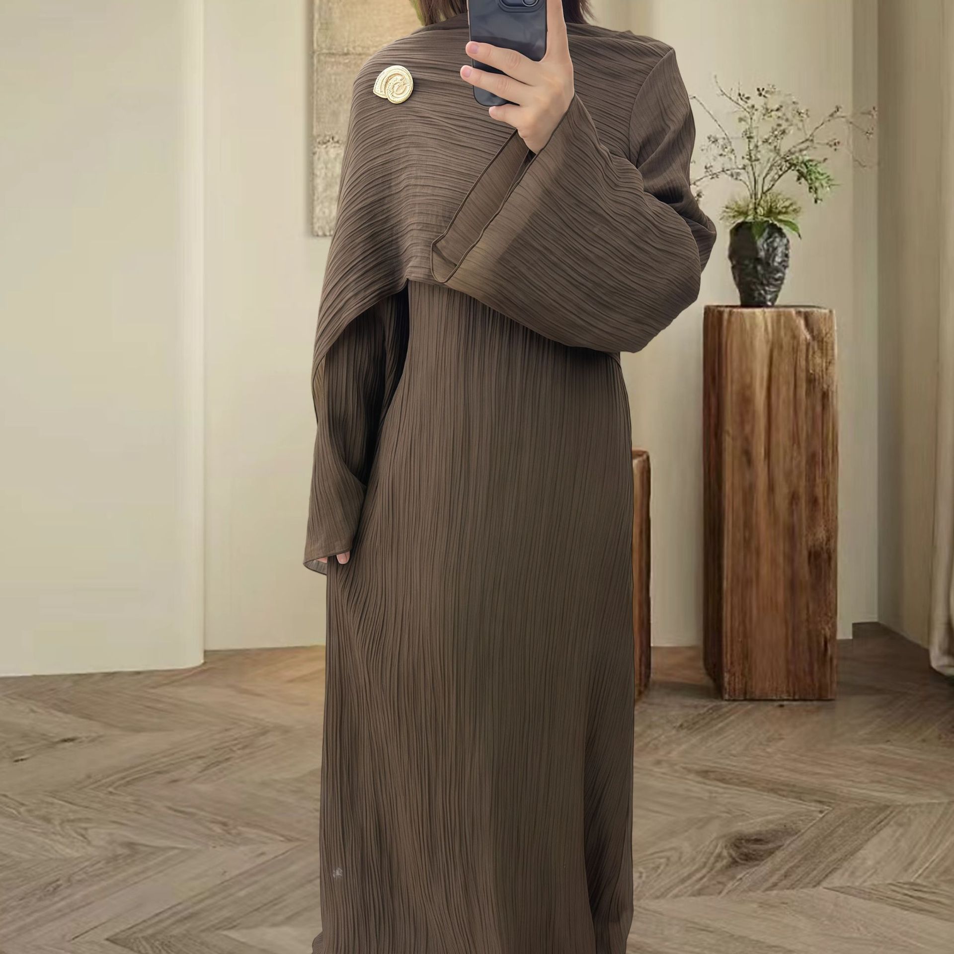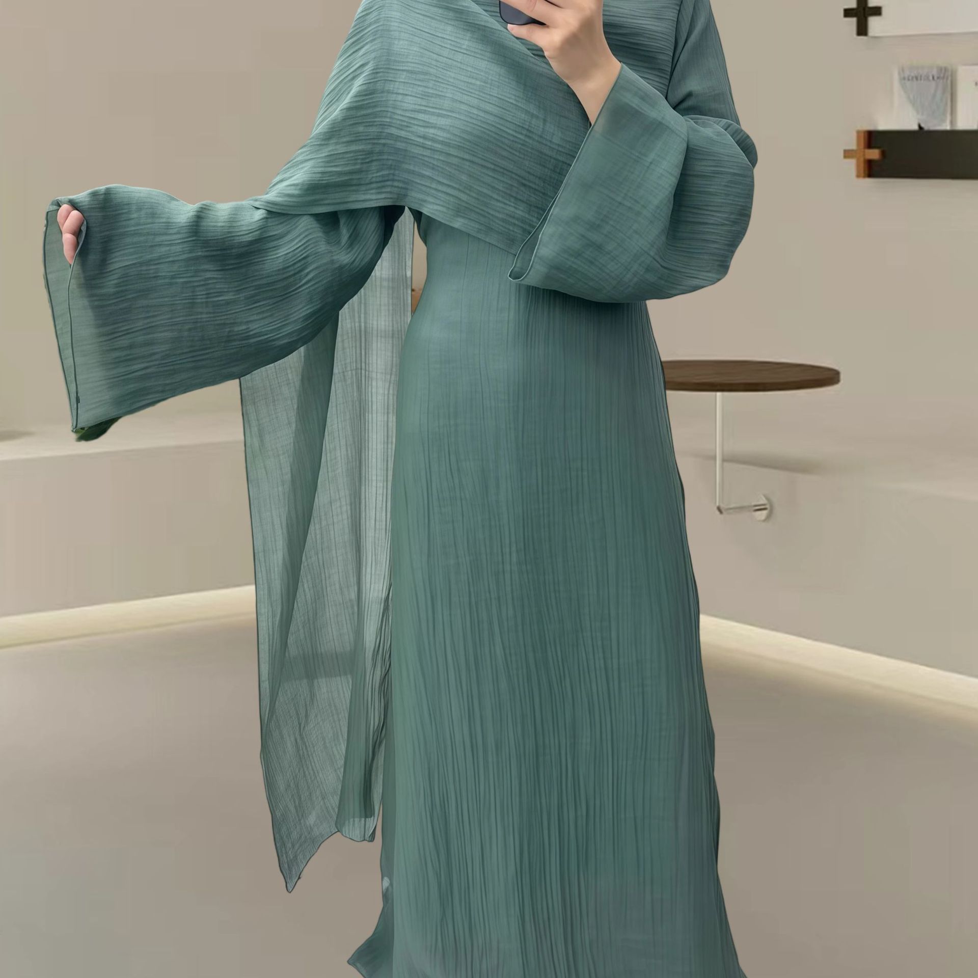 Women’s Autumn Muslim Crew-Neck Pleated Long Skirt