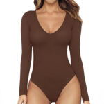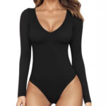 Womens Butt-Lifting Body-Shaping Long-Sleeve V-Neck Bodysuit
