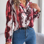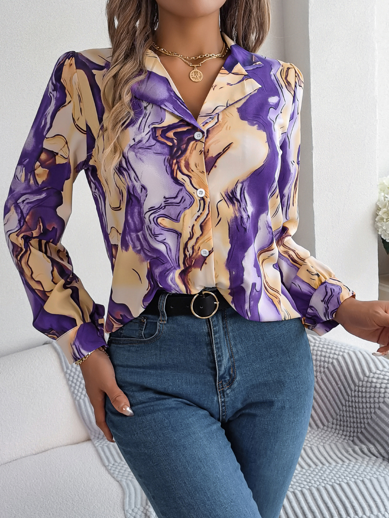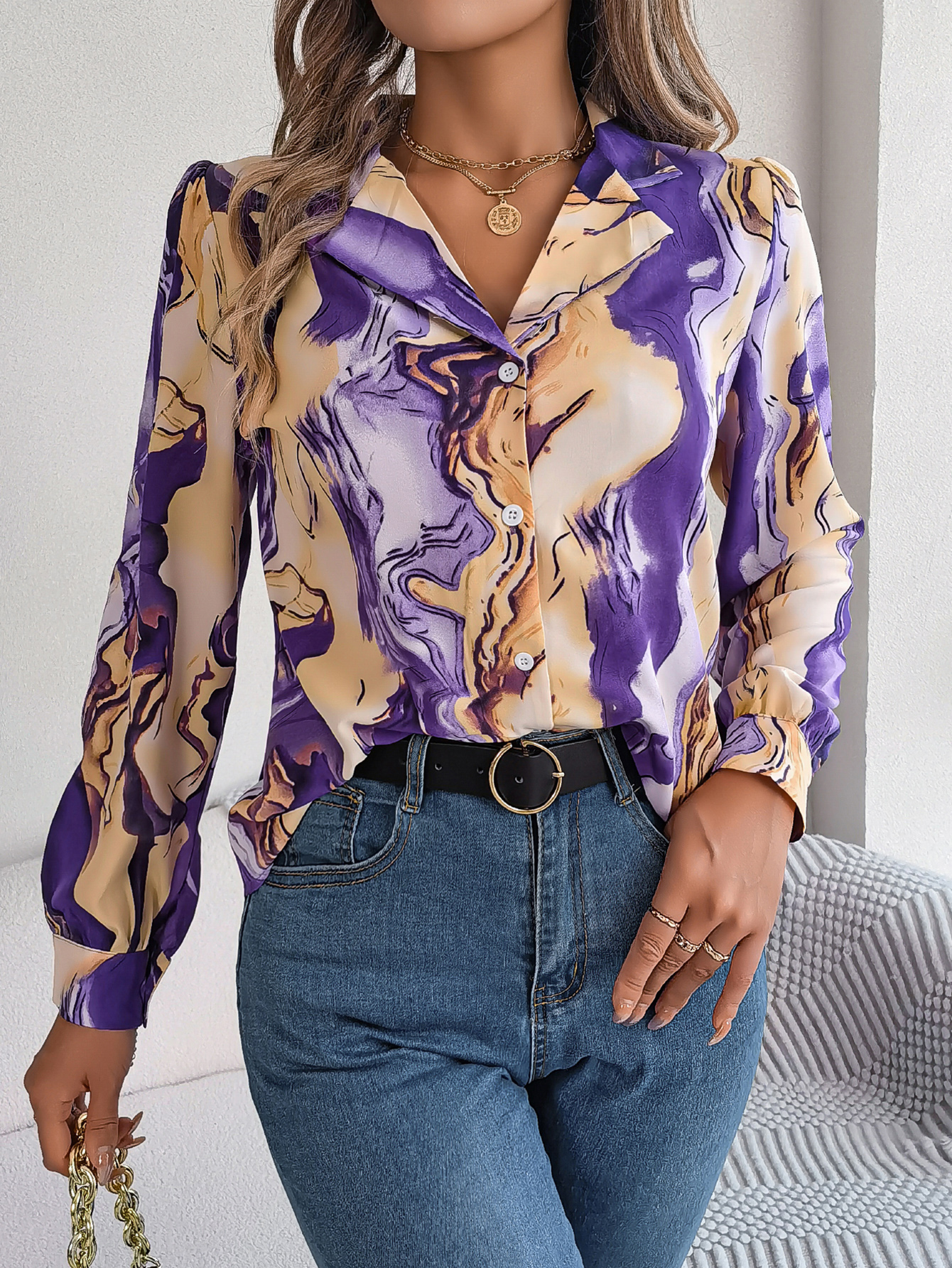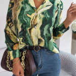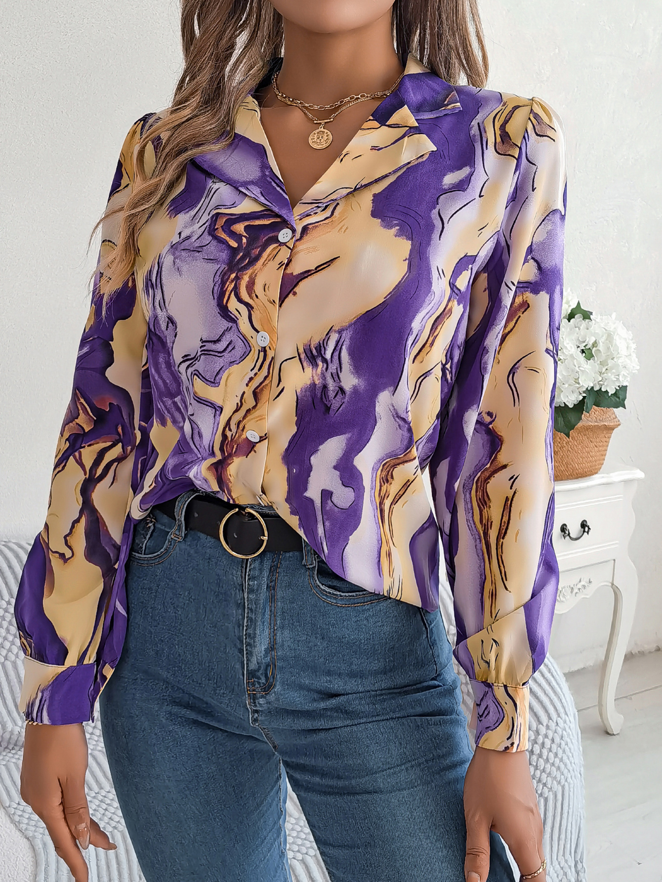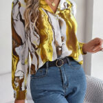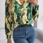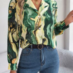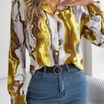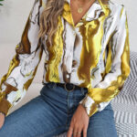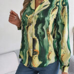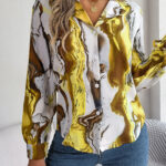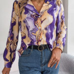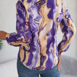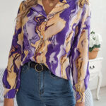 Women’s Casual Color Block Stripe Notched Lapel Long Sleeve Shirt