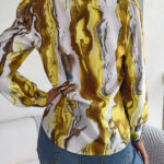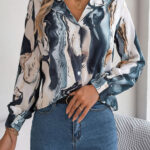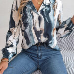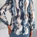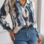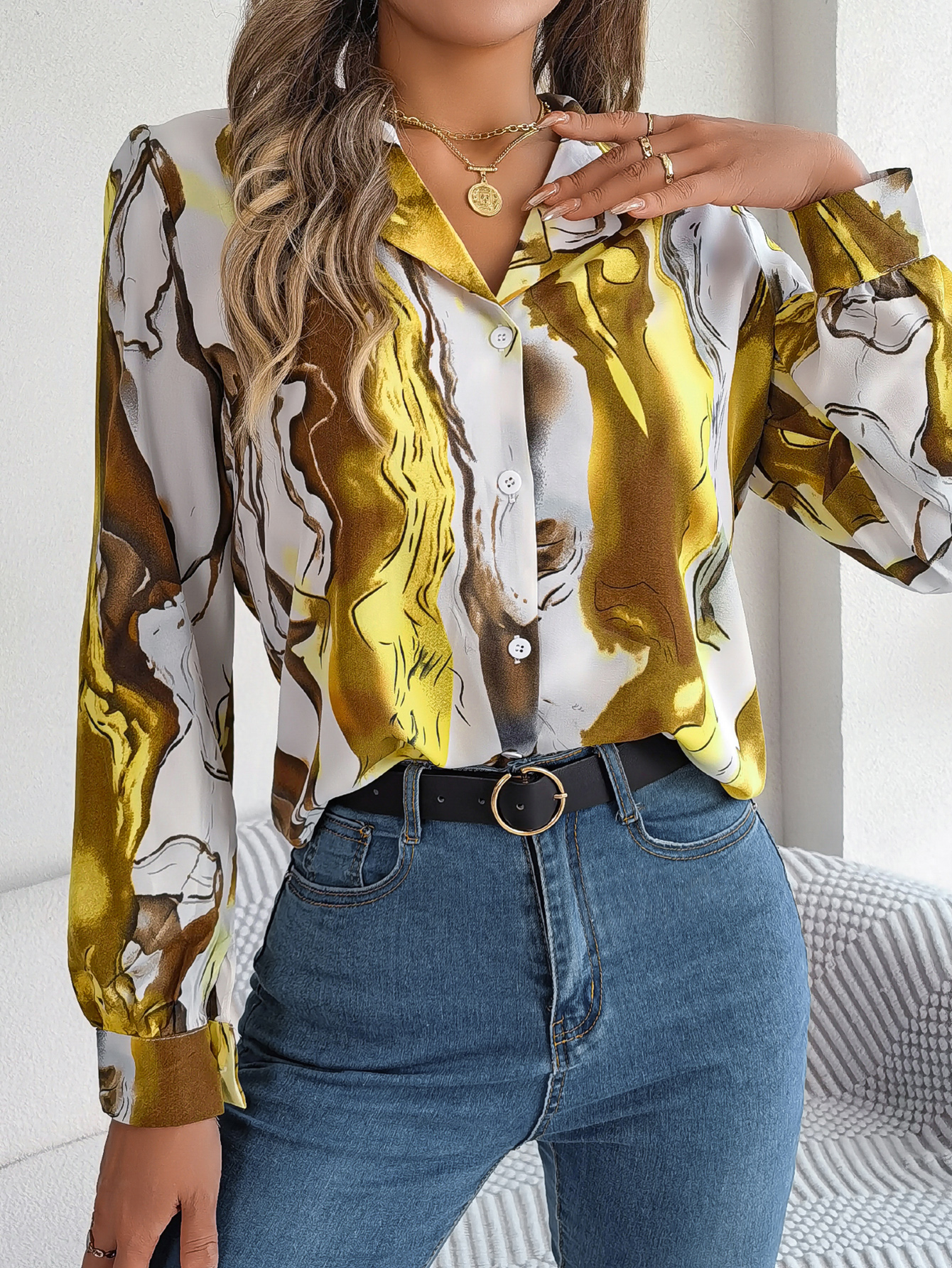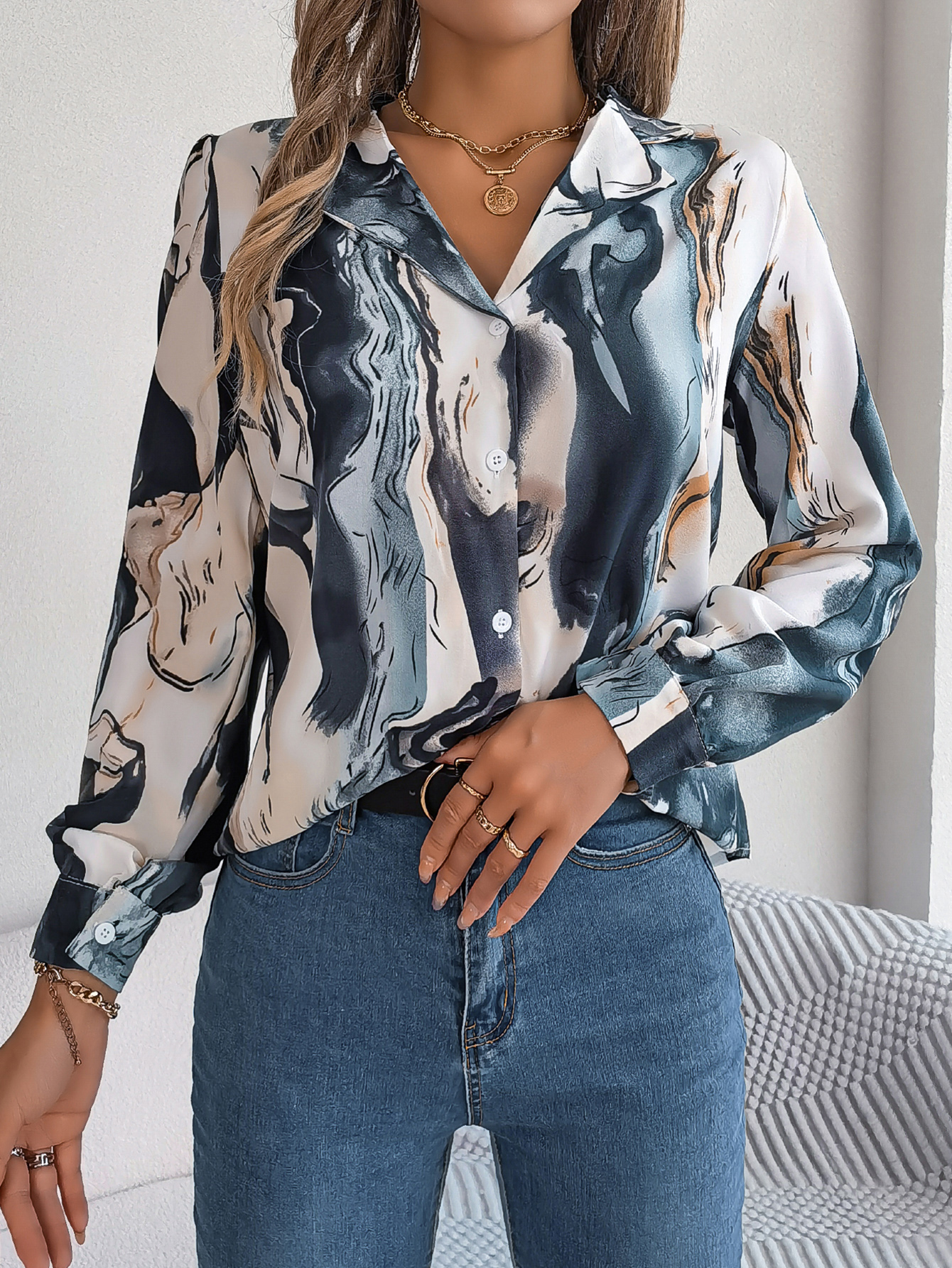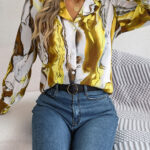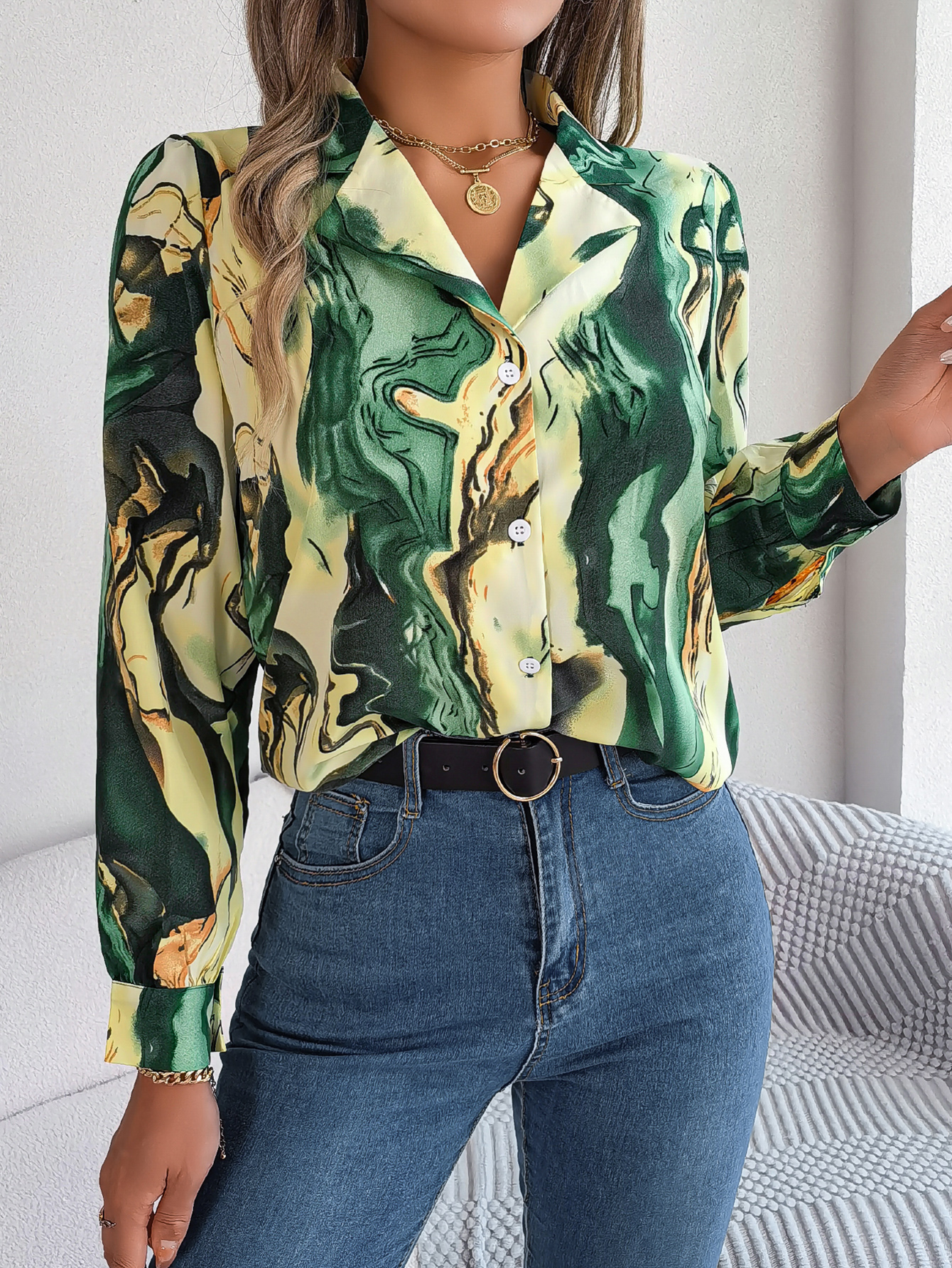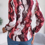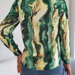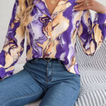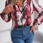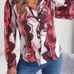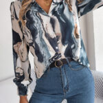 Women’s Casual Color Block Stripe Notched Lapel Long Sleeve Shirt