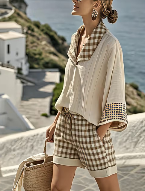 Women’s Casual Loose Plaid Shorts Set