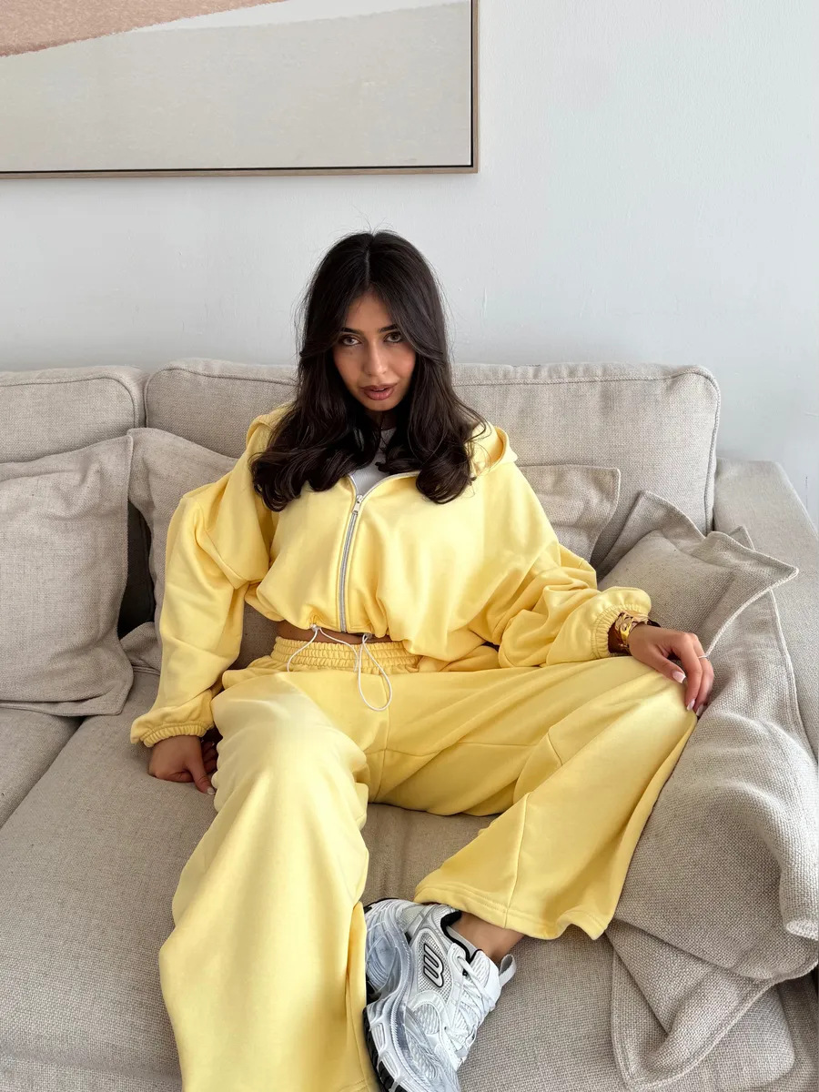Womens Casual Set Long-sleeve Zip-up Cardigan Hoodie