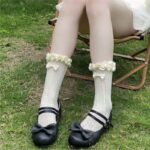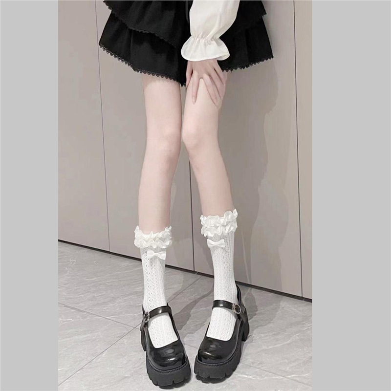Women’s Coquette Ruffle Trim Socks, White Lace Knit Mid-Calf Socks With Bow, Cute Hollow Out Crew Socks For Lolita & Balletcore Style is designed for style, comfort, and everyday use.