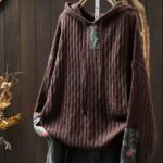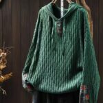 Womens Ethnic-Style Loose-Fit Oversized Sweater With Drawstring Hood