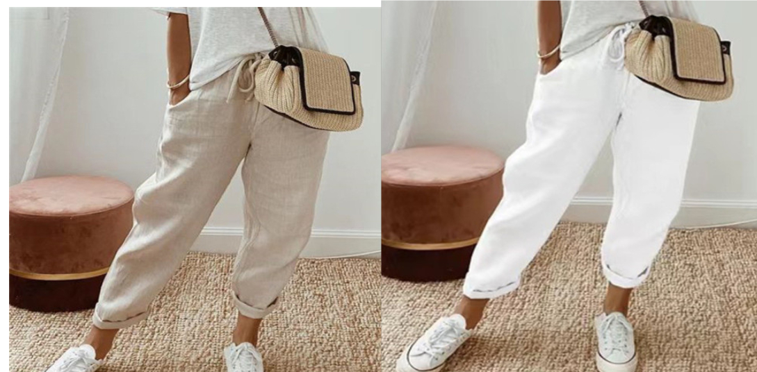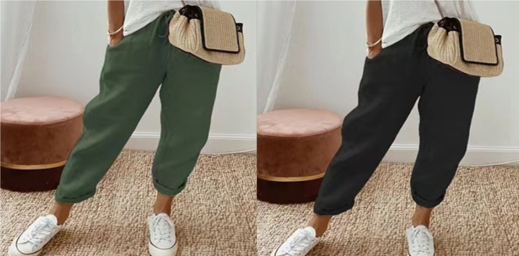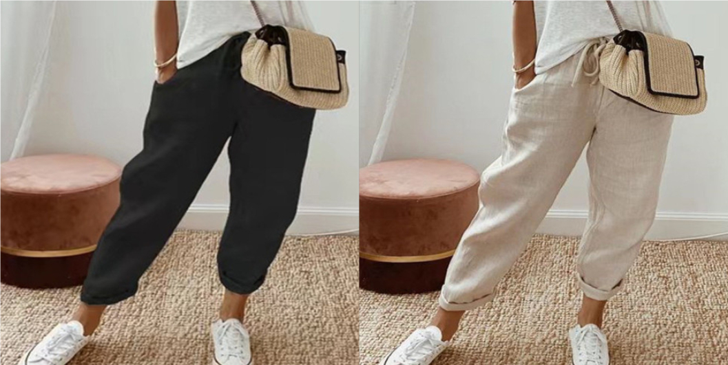 Women’s Fashion Cotton Linen Solid Color Casual Pants
