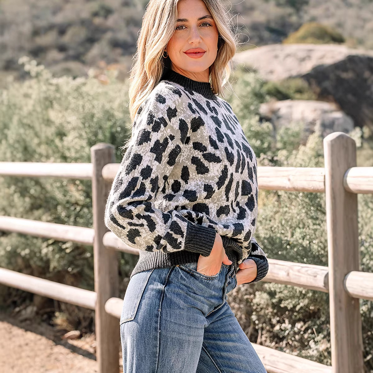 Women’s Fashion Leopard-Print Pullover Crewneck Sweater