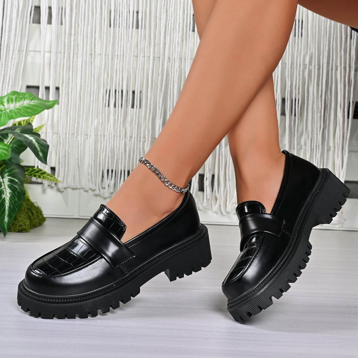 Womens Fashionable Plus-size Chunky-soled Leather Shoes is designed for style, comfort, and everyday wear.