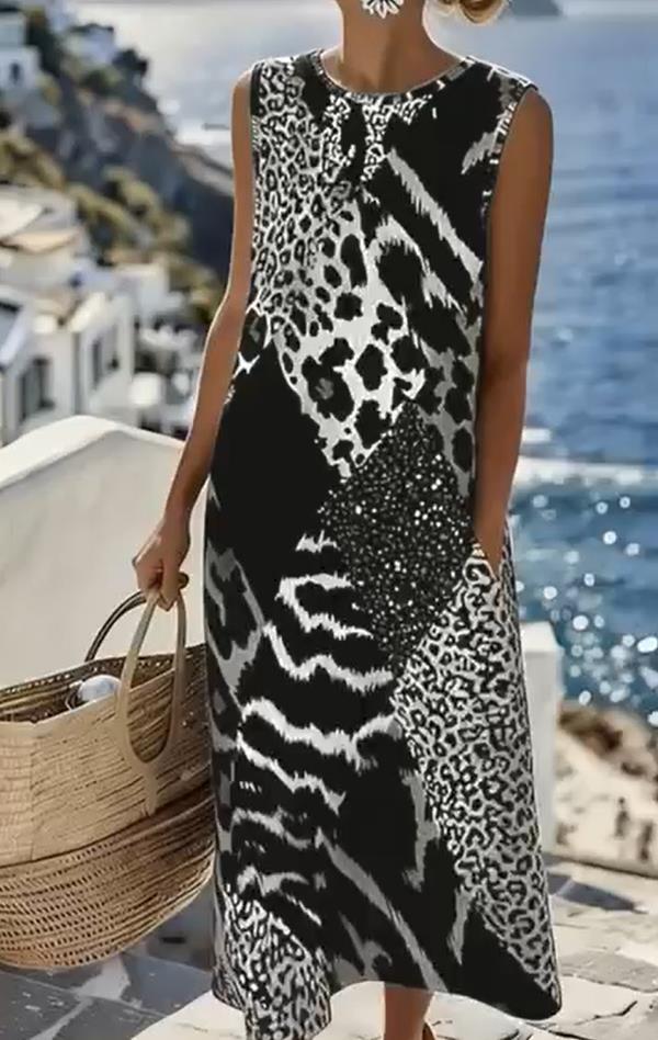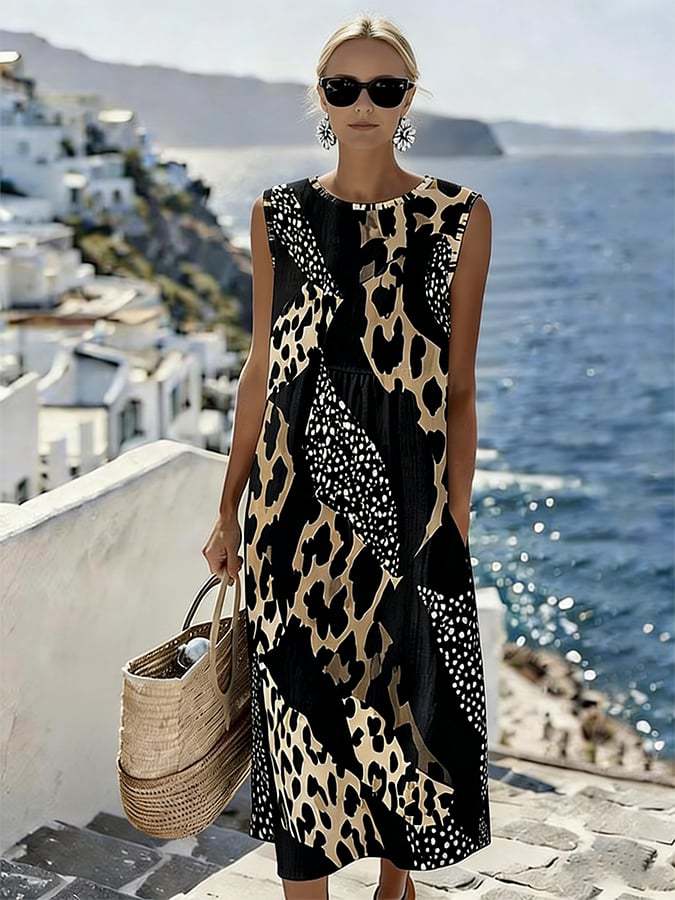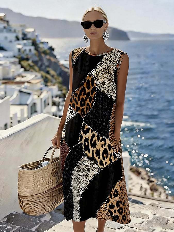 Women’s Fashionable Sleeveless Leopard-Print Dress