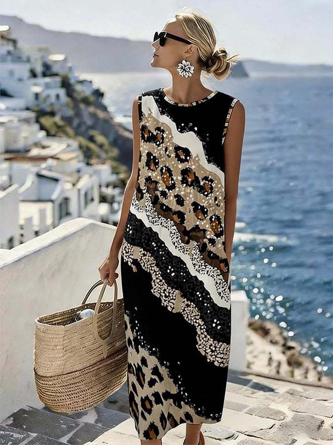 Women's Fashionable Sleeveless Leopard-Print Dress