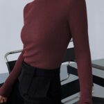 Womens Fashionable Tight-Fit Crew-Neck Knitted Top