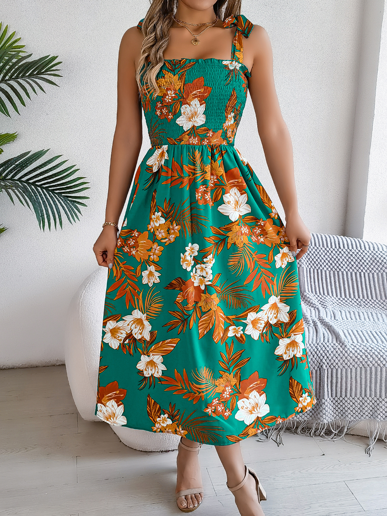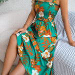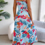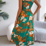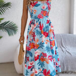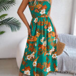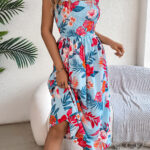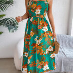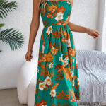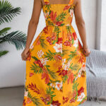 Women’s Floral Print Tie Waist Camisole Beach Vacation Maxi Dress