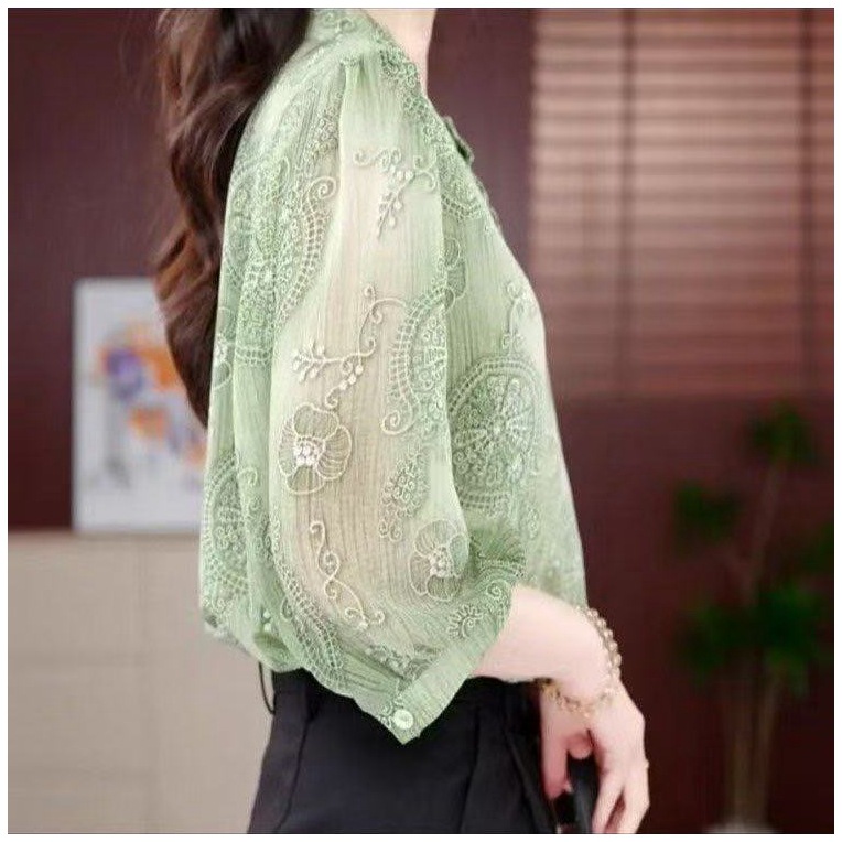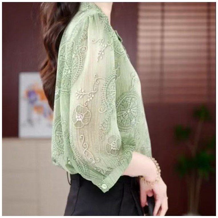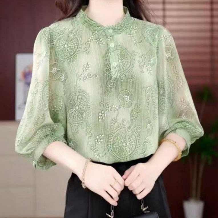 Women’s Floral Summer Shirt, Loose-Fit Fashionable Crew-Neck Top