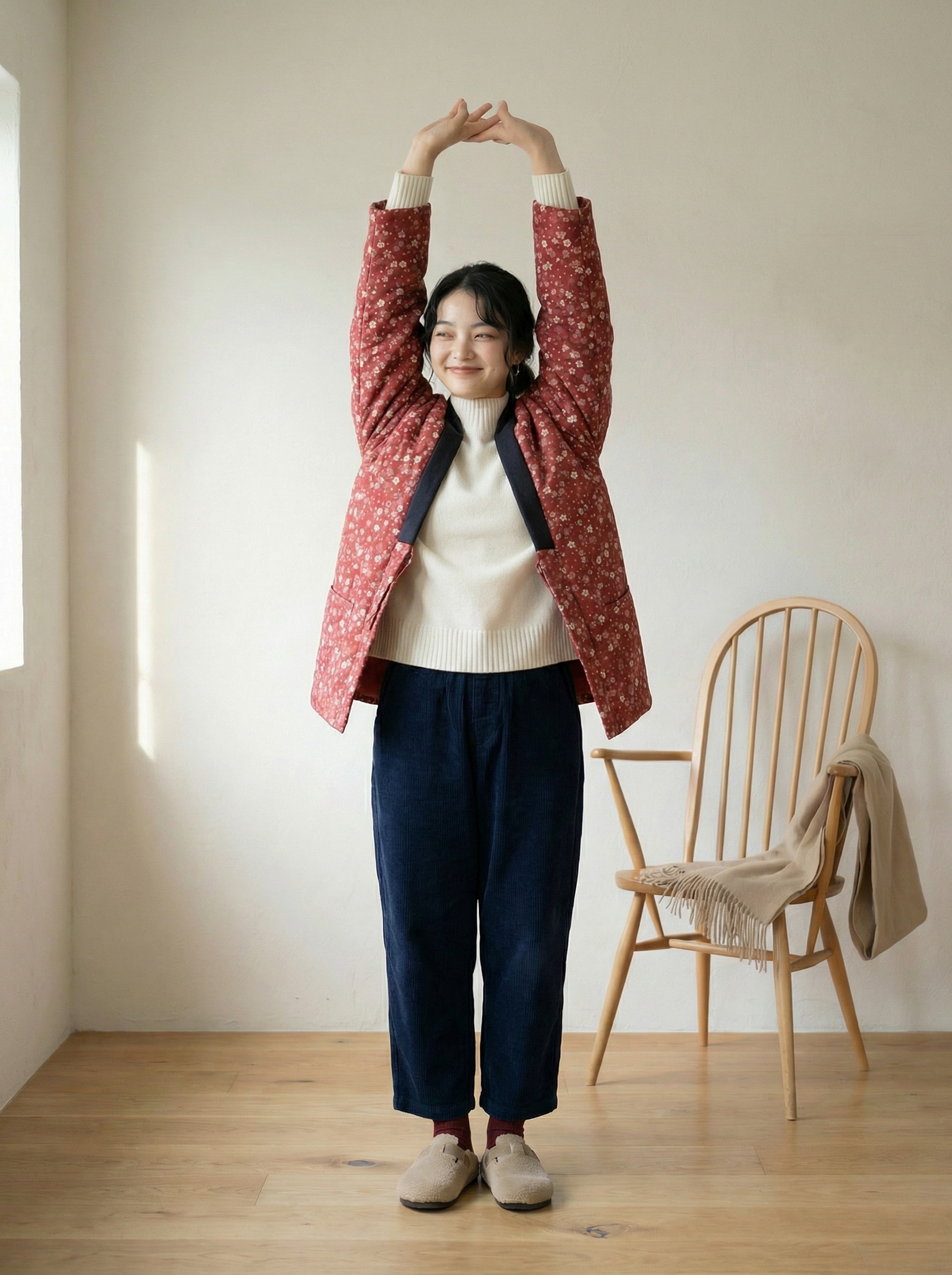 Women’s Haori, Women’s Warm Coat, Women’s Japanese Style Padded Jacket, Indoor Wear, Lightweight & Warm Printed Coat, Japanese Traditional Clothing, Oversized Padded Jacket With Pockets