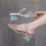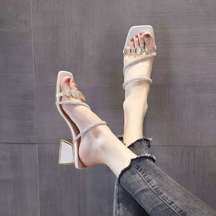 Women’s Korean Style Slide Sandals Summer Outdoor Wear Chunky Heel Fashion Rhinestone Sandals 2026 New Trendy Mid Heel Single Strap Women’s Shoes is designed for style, comfort, and everyday use.