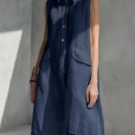 Women’s Lapel-collar Sleeveless Casual Loose Cotton-linen Dress