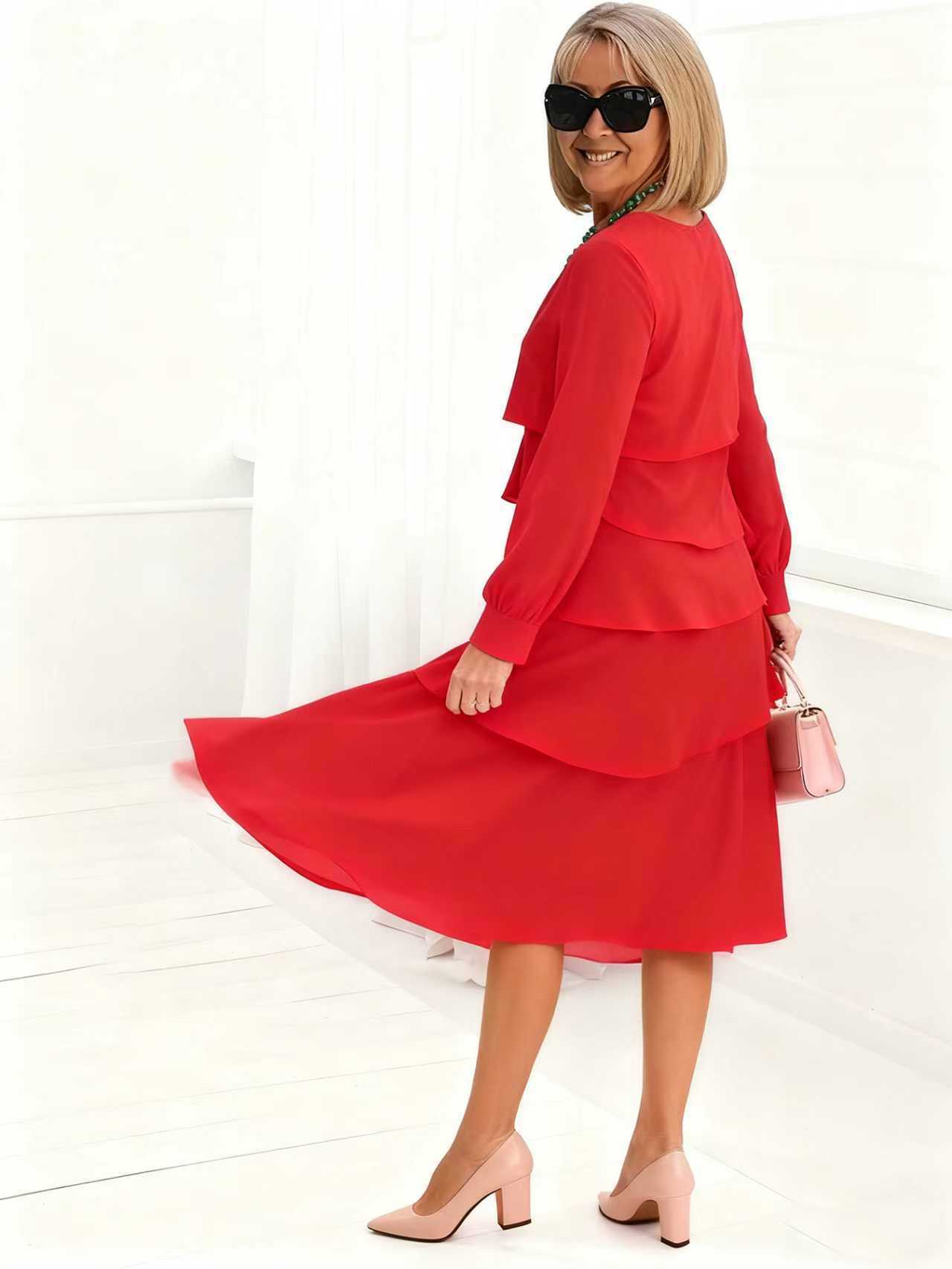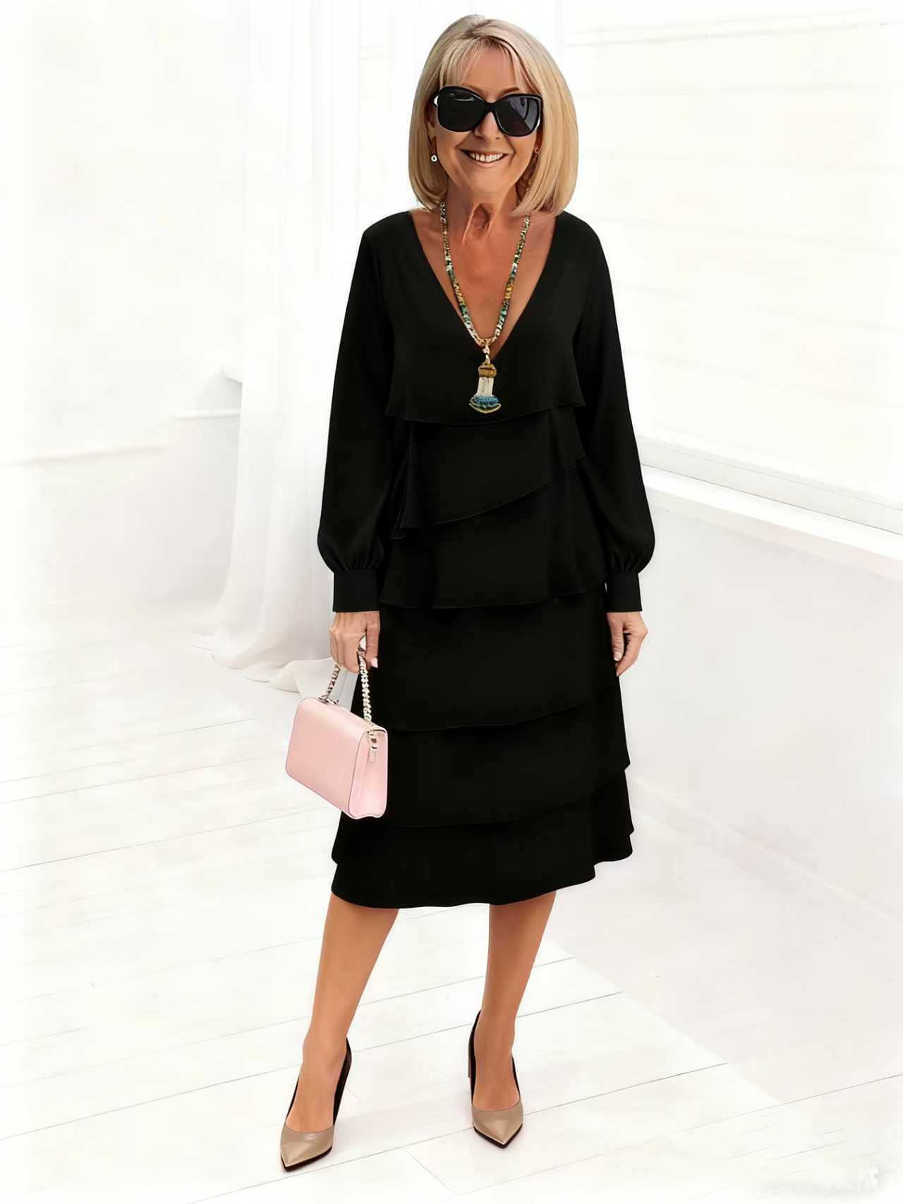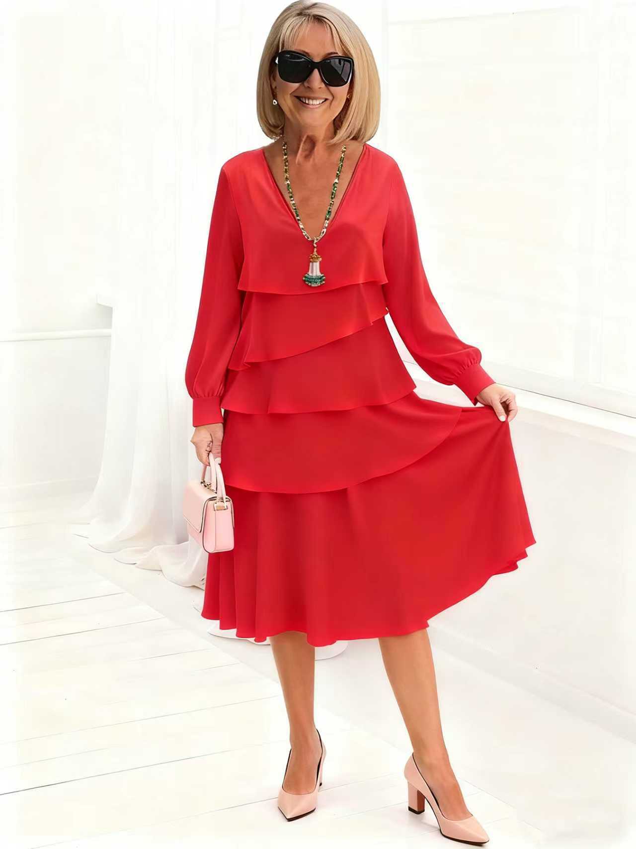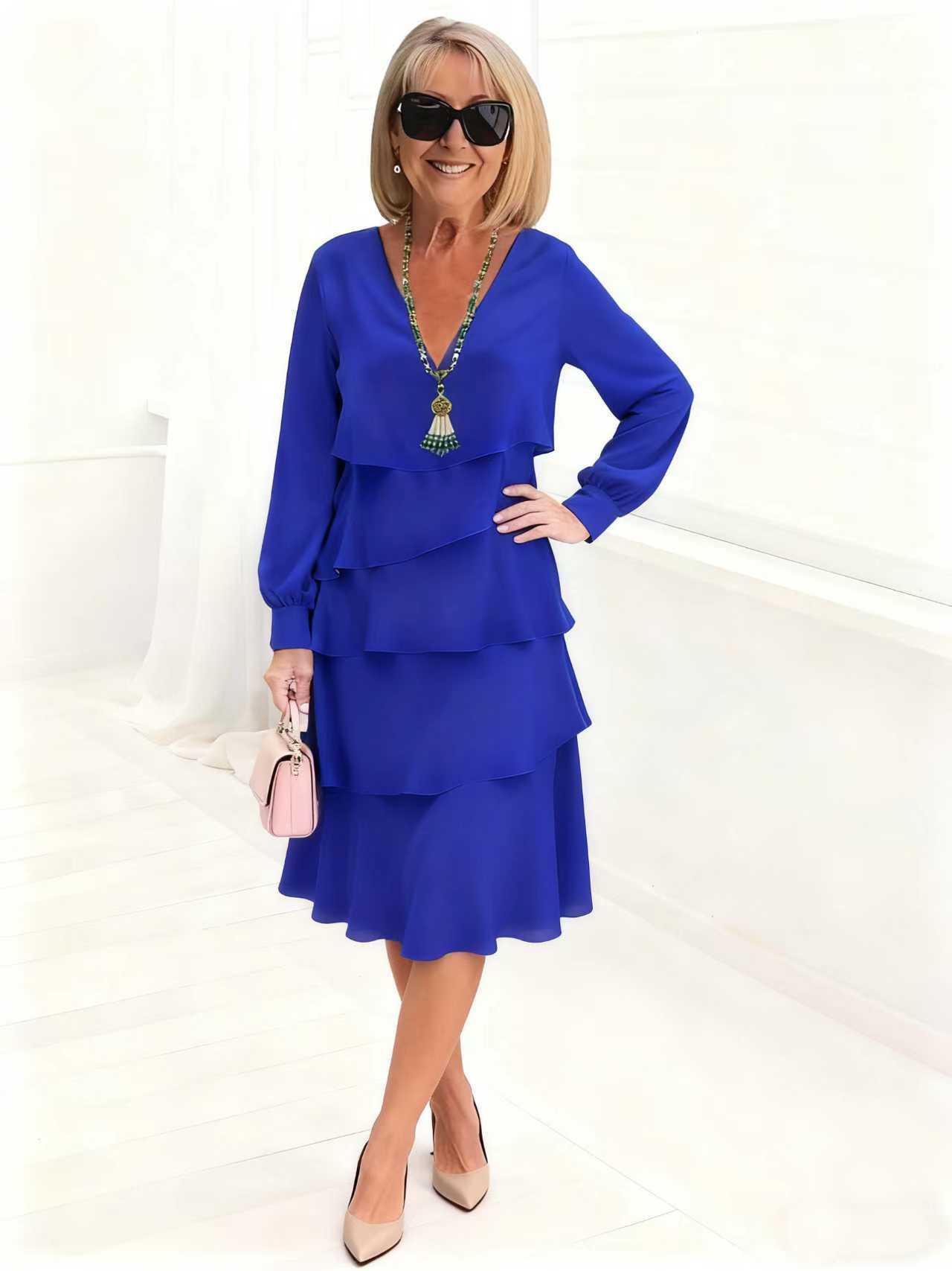 Women’s Long-sleeve V-neck Tiered Dress