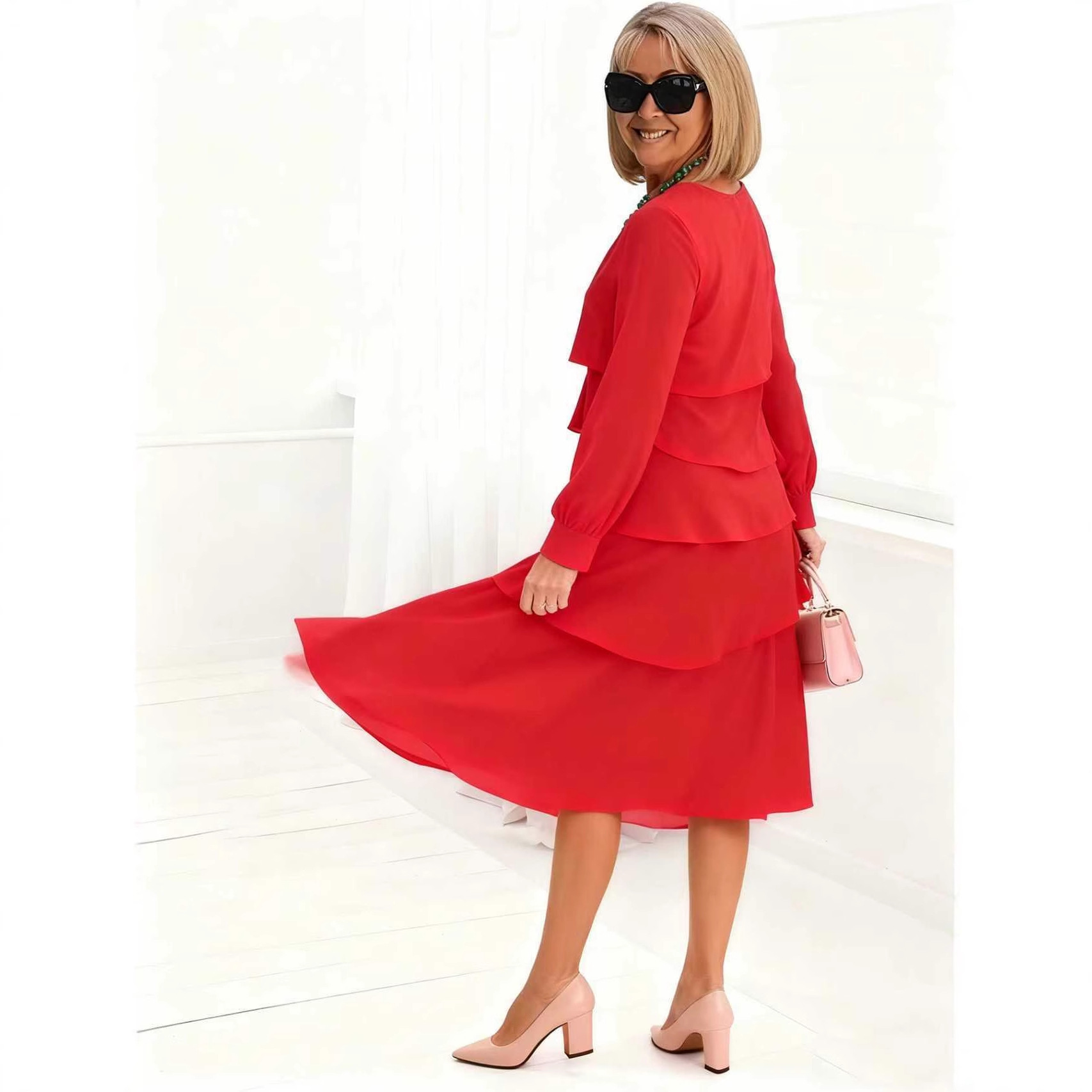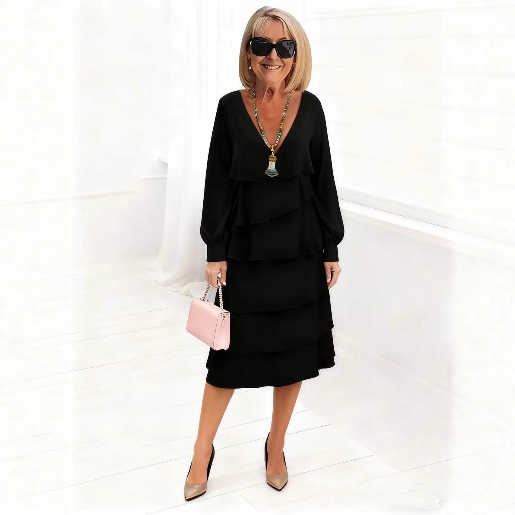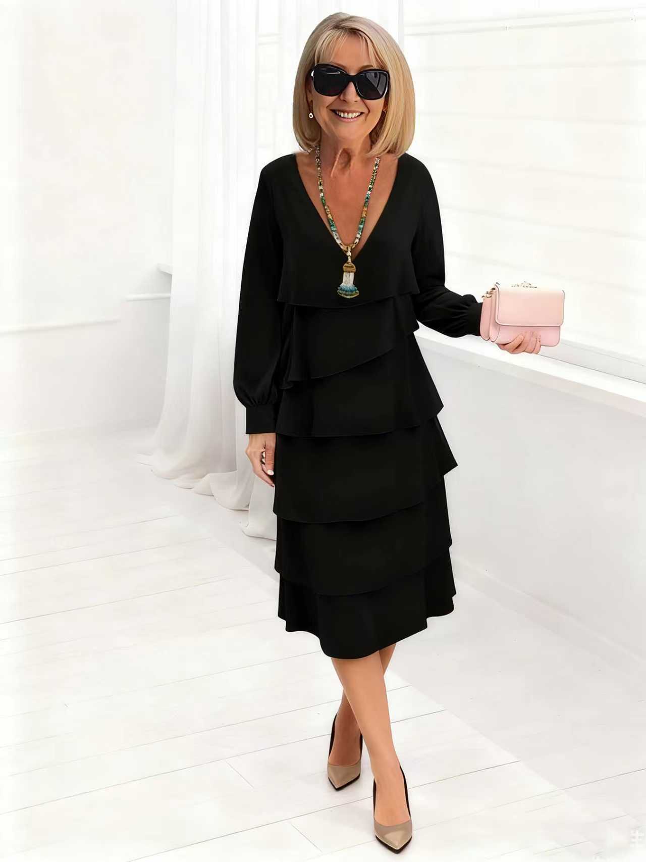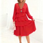 Women’s Long-sleeve V-neck Tiered Dress is designed for style, comfort, and everyday use.