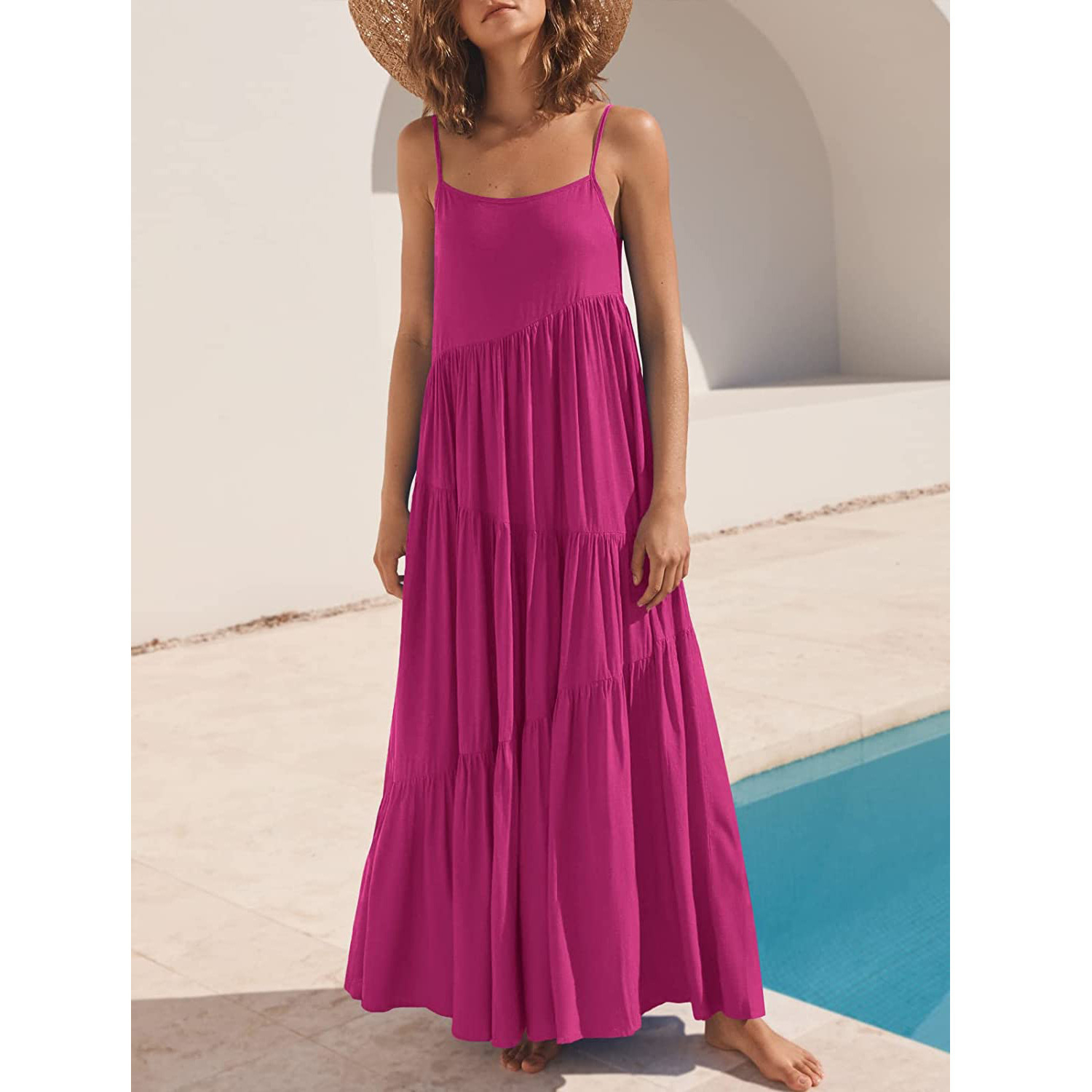 Be the first to review “Womens Loose Casual Pleated Irregular Dress Beach Slip Maxi Dress”