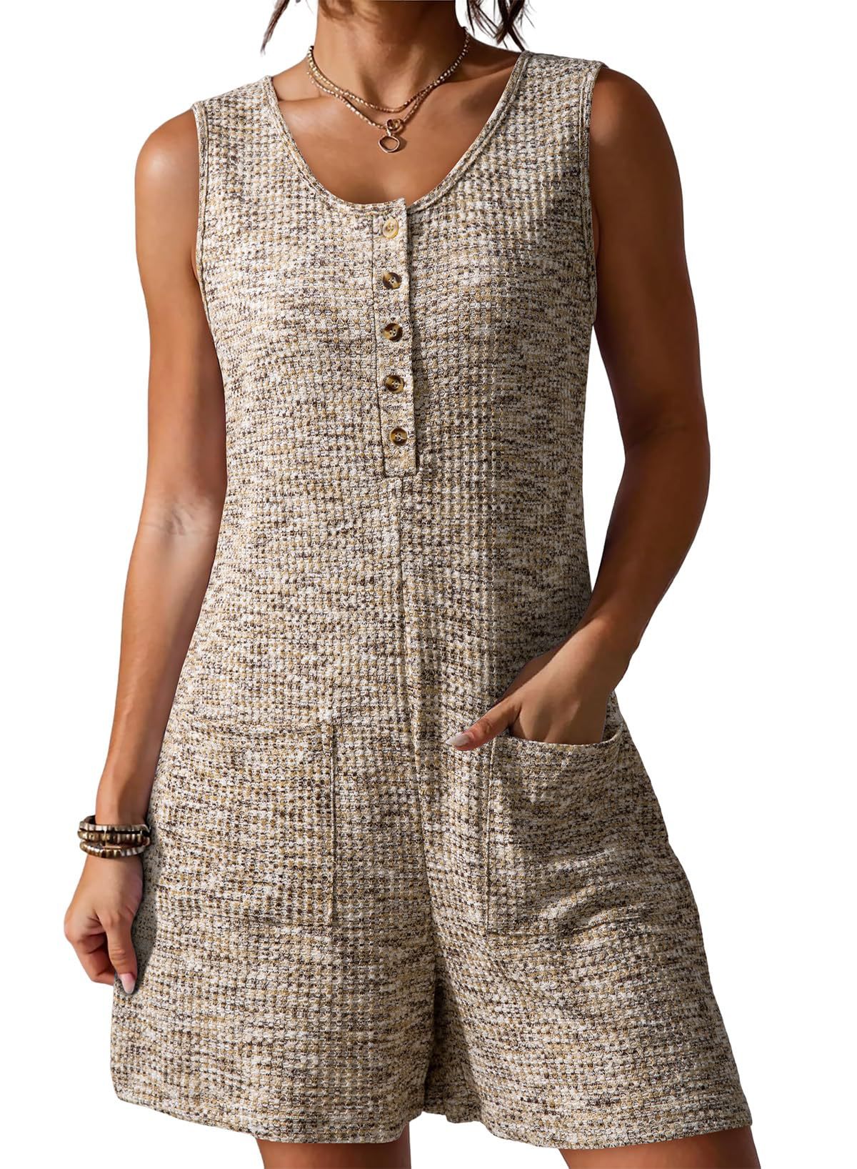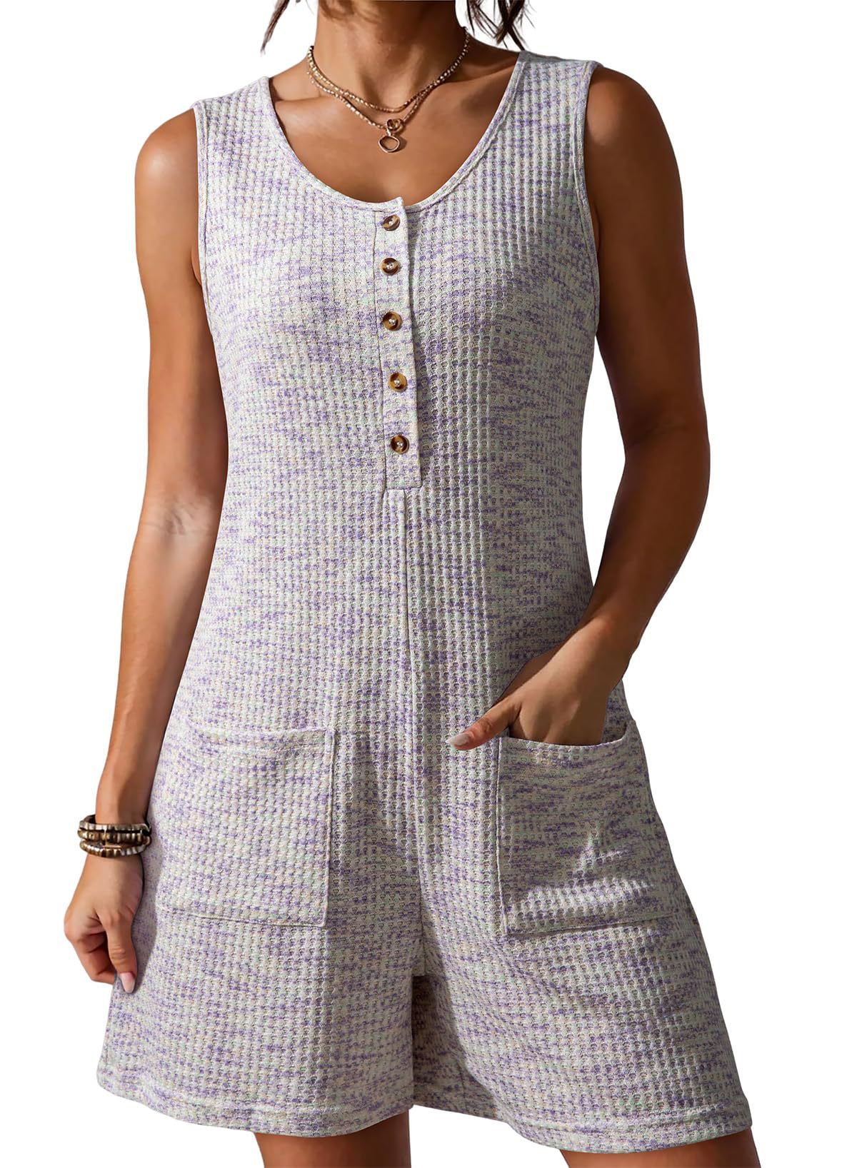 Womens Loose Waffle-Weave Tank Top Wide-Leg Jumpsuit