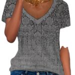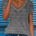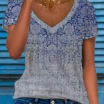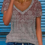 Women’s Multicolor Floral Print Short-Sleeve V-Neck Top