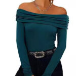Be the first to review “Womens Off-shoulder Figure-hugging Long-sleeve Slip Dress With A Boat Neckline”