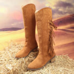 Women’s Pointed-Toe Low-Heel Comfortable All-Match Plus-Size Thigh-High Fringe Boots