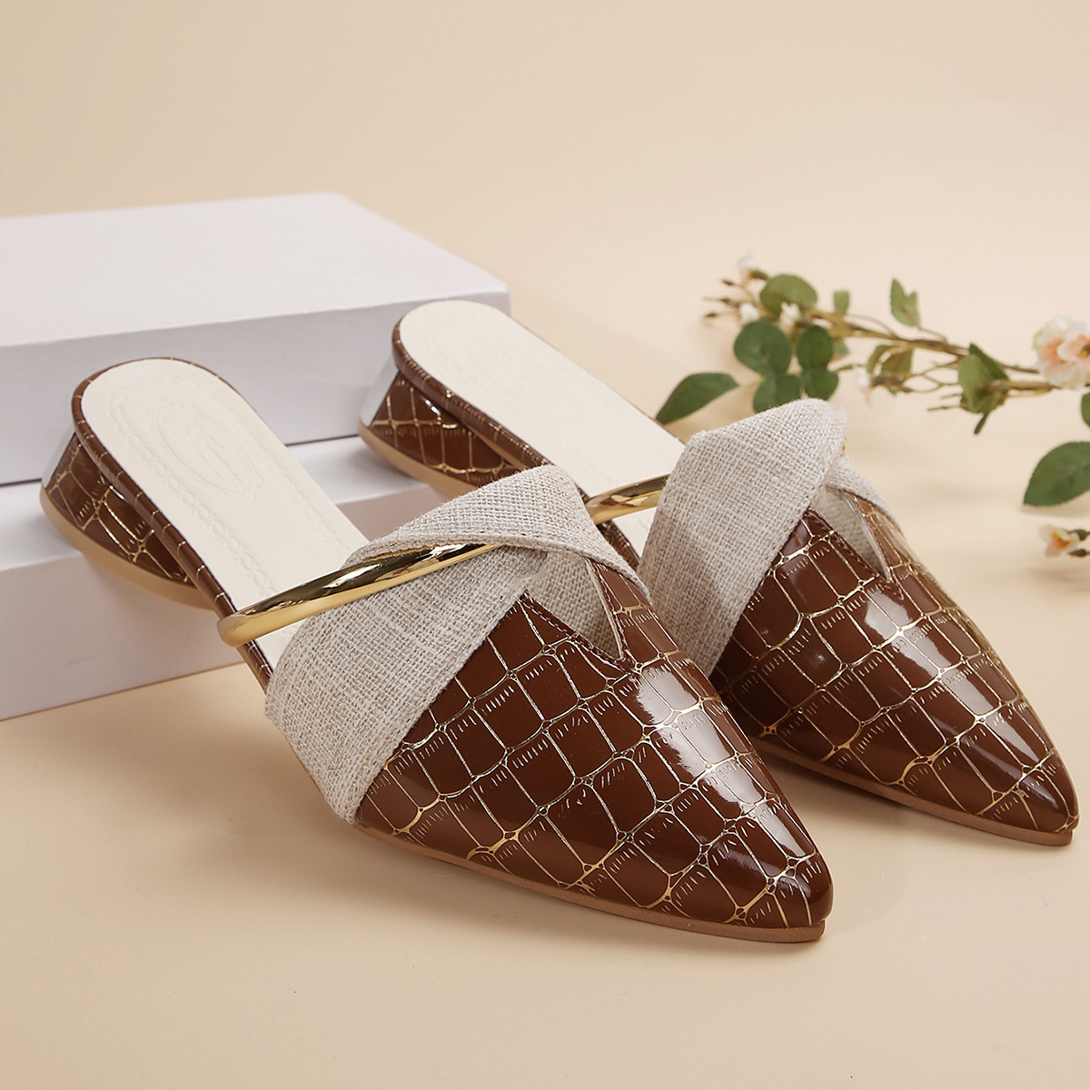 Womens Pointed-Toe Low-Heel Slippers For Outdoors Sexy Chic