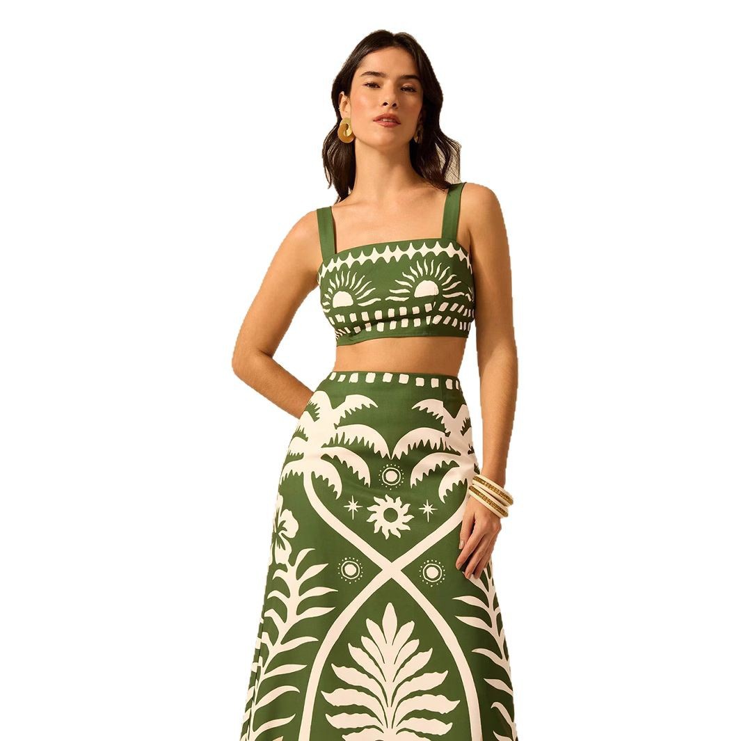 Womens Printed Camisole And High-waisted Straight Midi Skirt is designed for style, comfort, and everyday use.