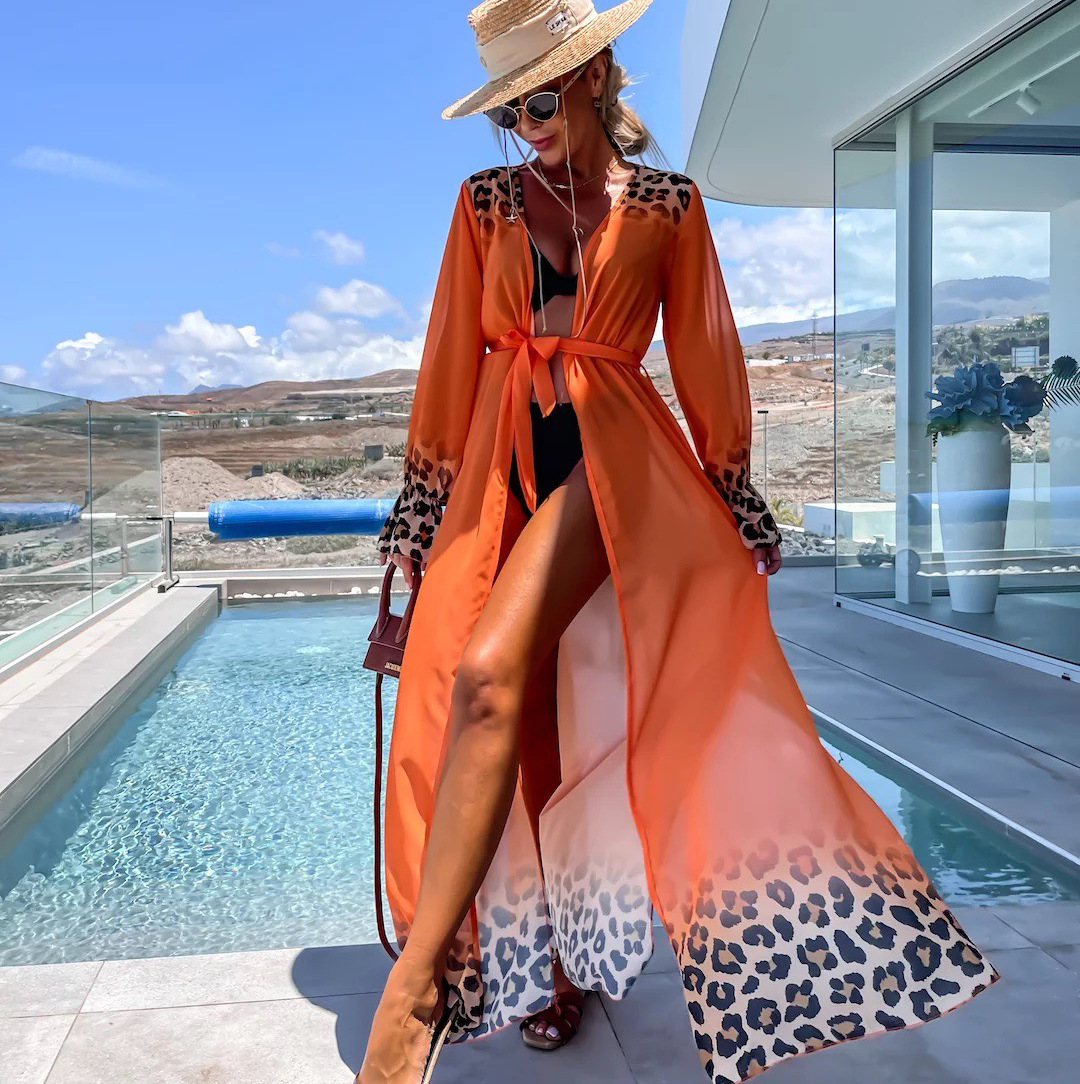 Womens Printed Lace-Up Chiffon Cover-Up For Beach And Vacation