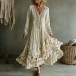 Be the first to review “Womens Retro Bohemian Rose-Embroidered Loose Linen Maxi Dress”