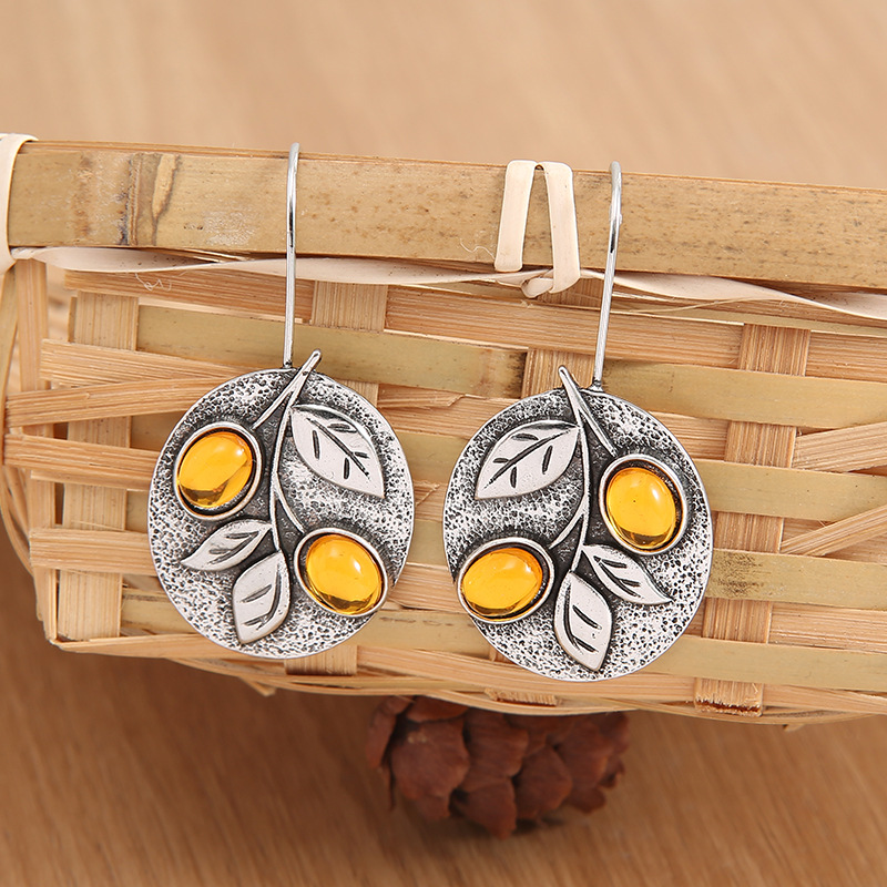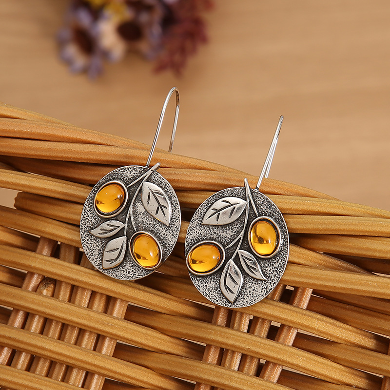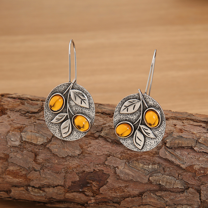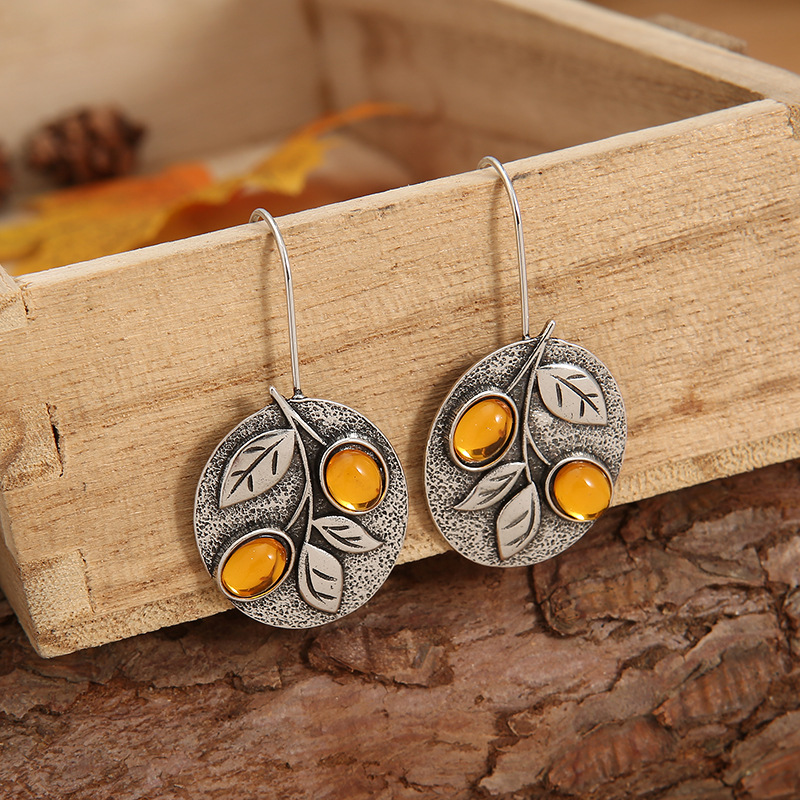 Women’s Retro Floral Orange Gemstone Earrings
