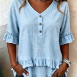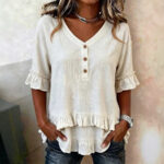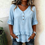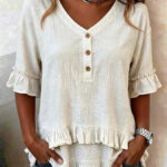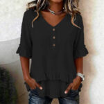 Be the first to review “Womens Retro V-Neck Ruffled Loose Short-Sleeve Shirt”