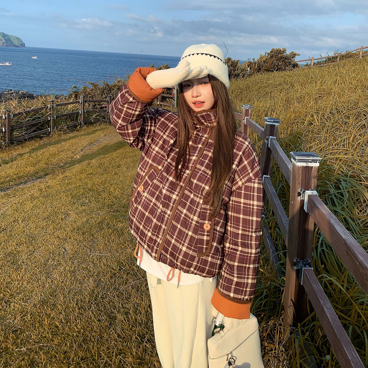 Womens Reversible Quilted Puffer Jacket With Patchwork Plaid Design