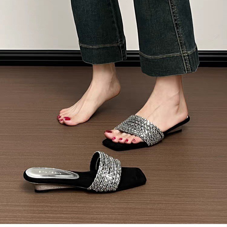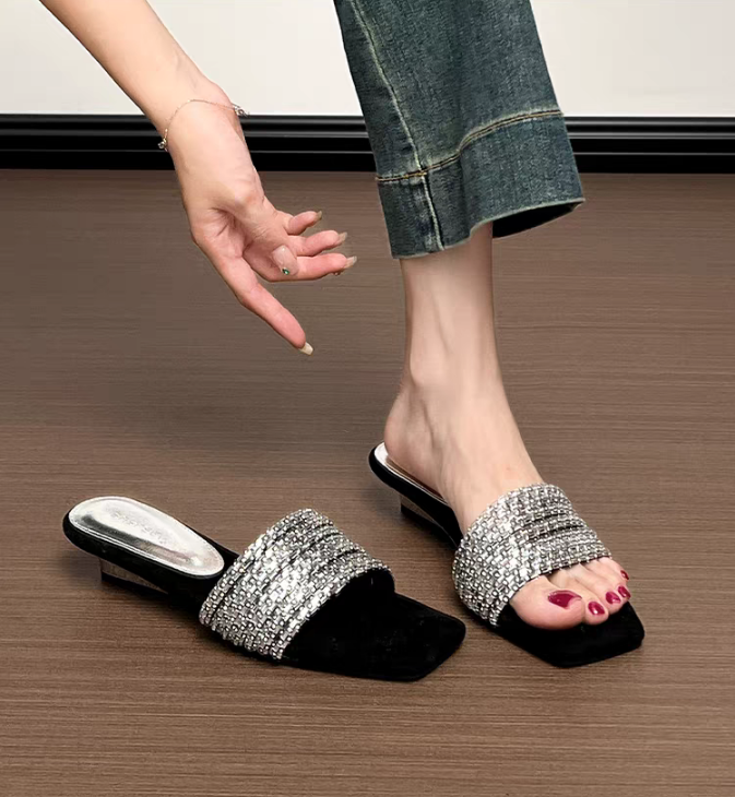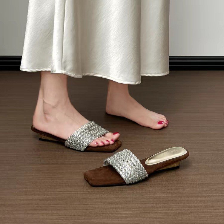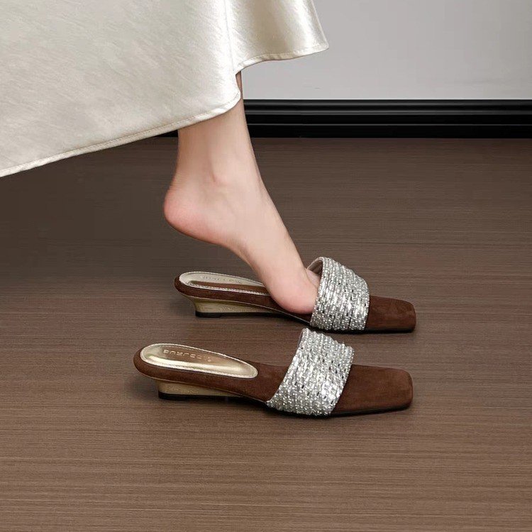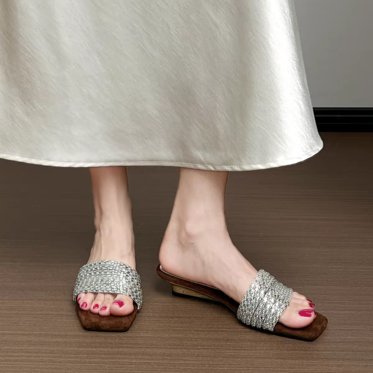 Women’s Rhinestone One-Strap Sandals, New Trendy Design For Summer 2026, Outdoor Wear, Gorgeous Suede Elegant Wedge Slide Sandals is designed for style, comfort, and everyday use.
