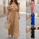 Be the first to review “Womens Ruffled Off-Shoulder Solid Color Cinched Waist Jumpsuit”