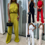 Womens Sexy Fashionable High-waisted Backless Tailored Straight Jumpsuit