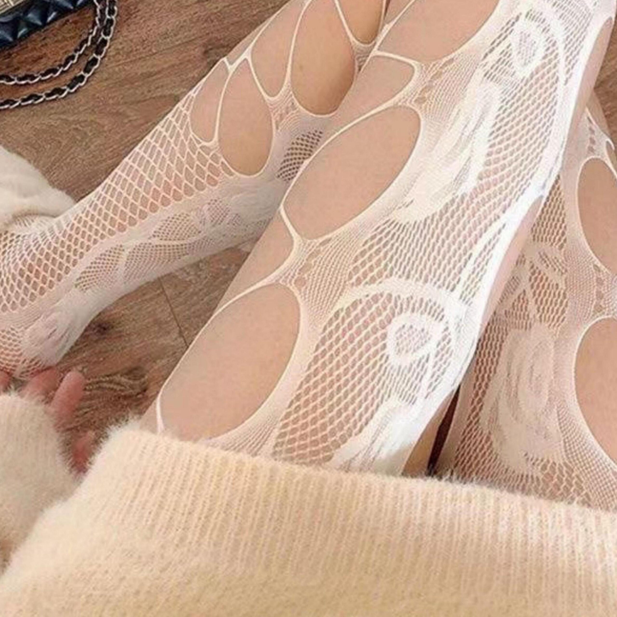 Women’s Side-cutout Fishnet Stockings, Summer Sweet And Cool Hot Girl Style, White Silk Base Stockings, Internet Celebrity Sexy Trendy Pantyhose