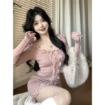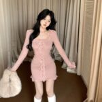 Be the first to review “Womens Slim-fit Lace-trimmed Long-sleeve Dress”