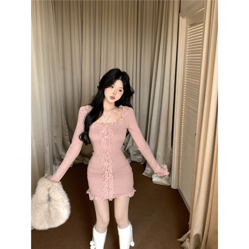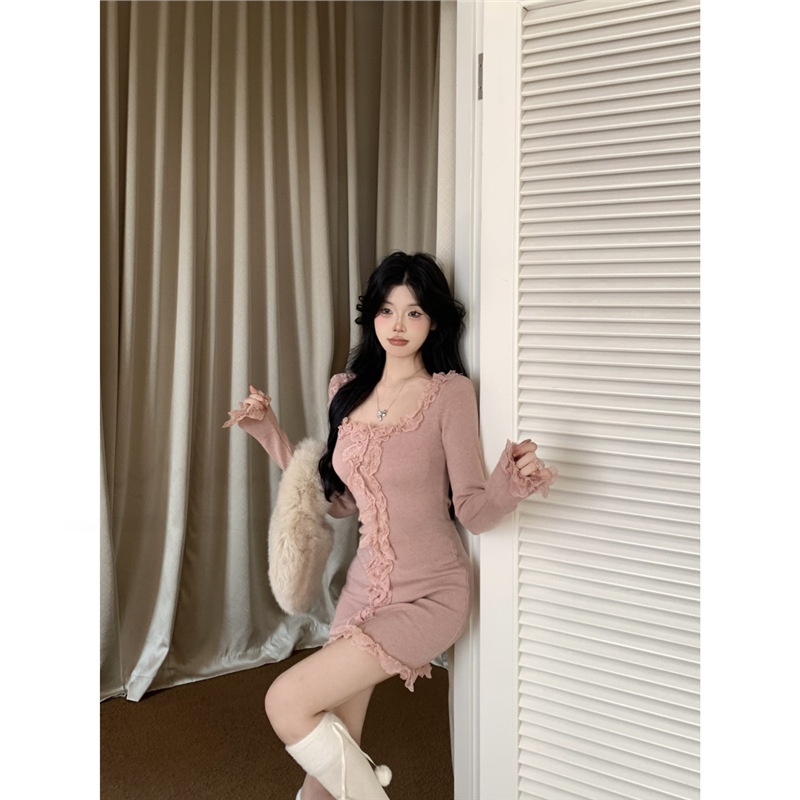 Womens Slim-fit Lace-trimmed Long-sleeve Dress is designed for style, comfort, and everyday use.