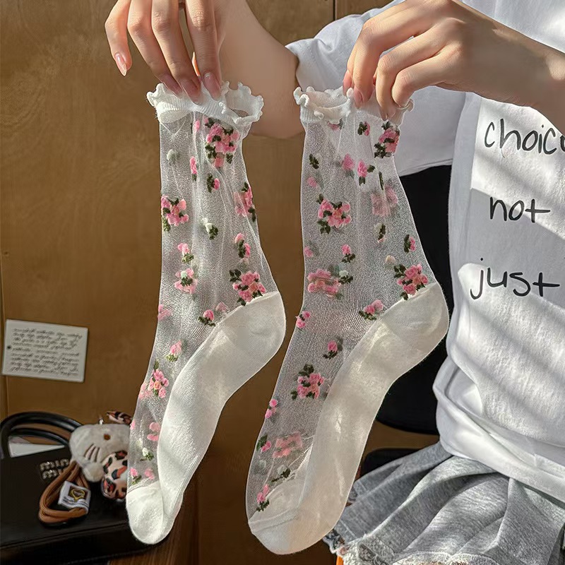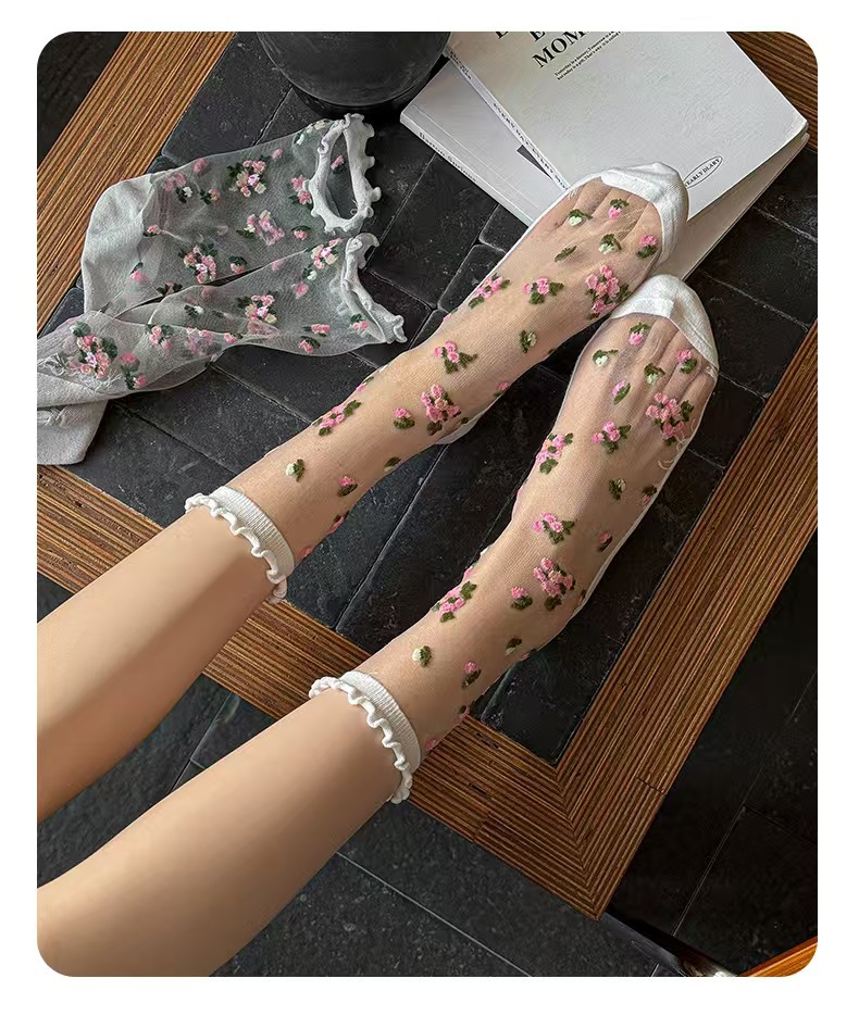 Women’s Socks, Sheer Floral Mid-Calf Socks, Thin Crystal Silk Princess Socks With Ruffle Lace Trims For Summer, New Arrivals Wholesale is designed for style, comfort, and everyday use.