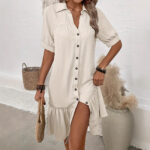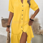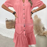 Be the first to review “Womens Solid-Color Single-Breasted New Puff-Sleeve Dress”