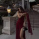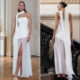 Womens Solid-Color Strapless Dress With Fluttering Ties And A Slit