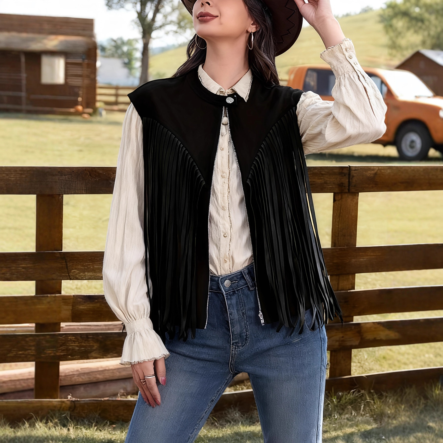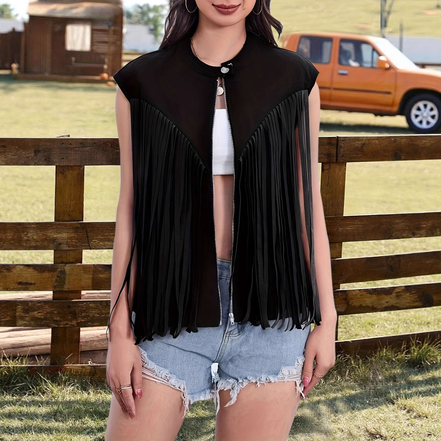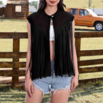 Women’s Solid Color Tassel Vest Sleeveless Zipper Loose Jacket