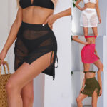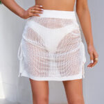 Womens Solid-Colored Hollow-Out Sheer Drawstring Slit Skirt
